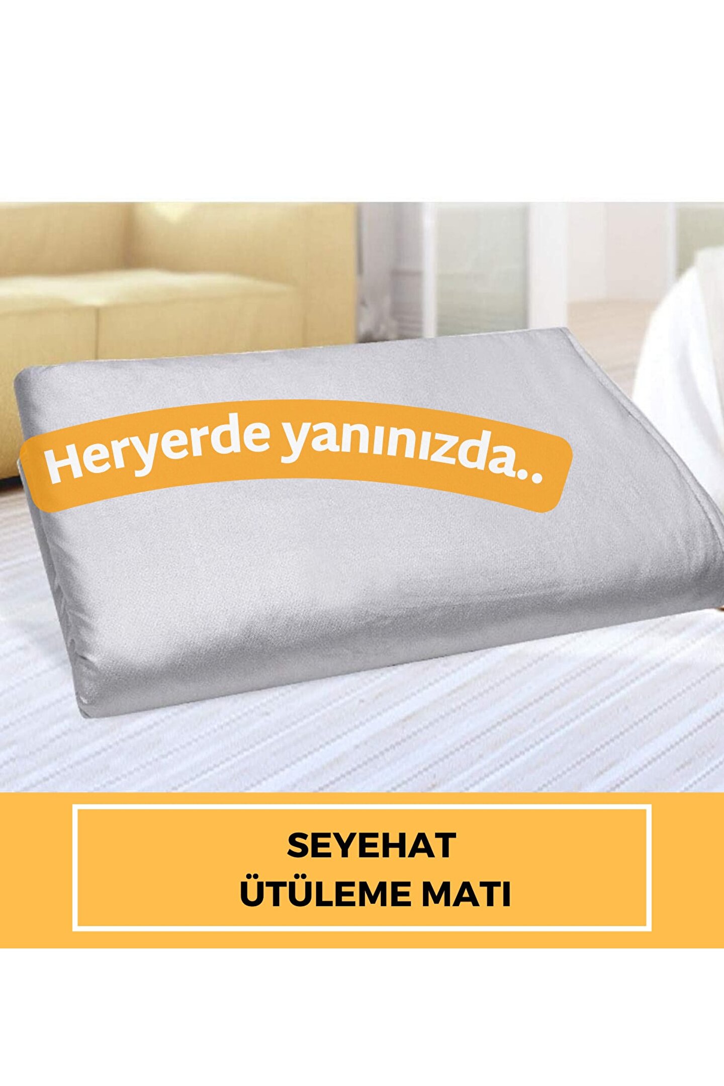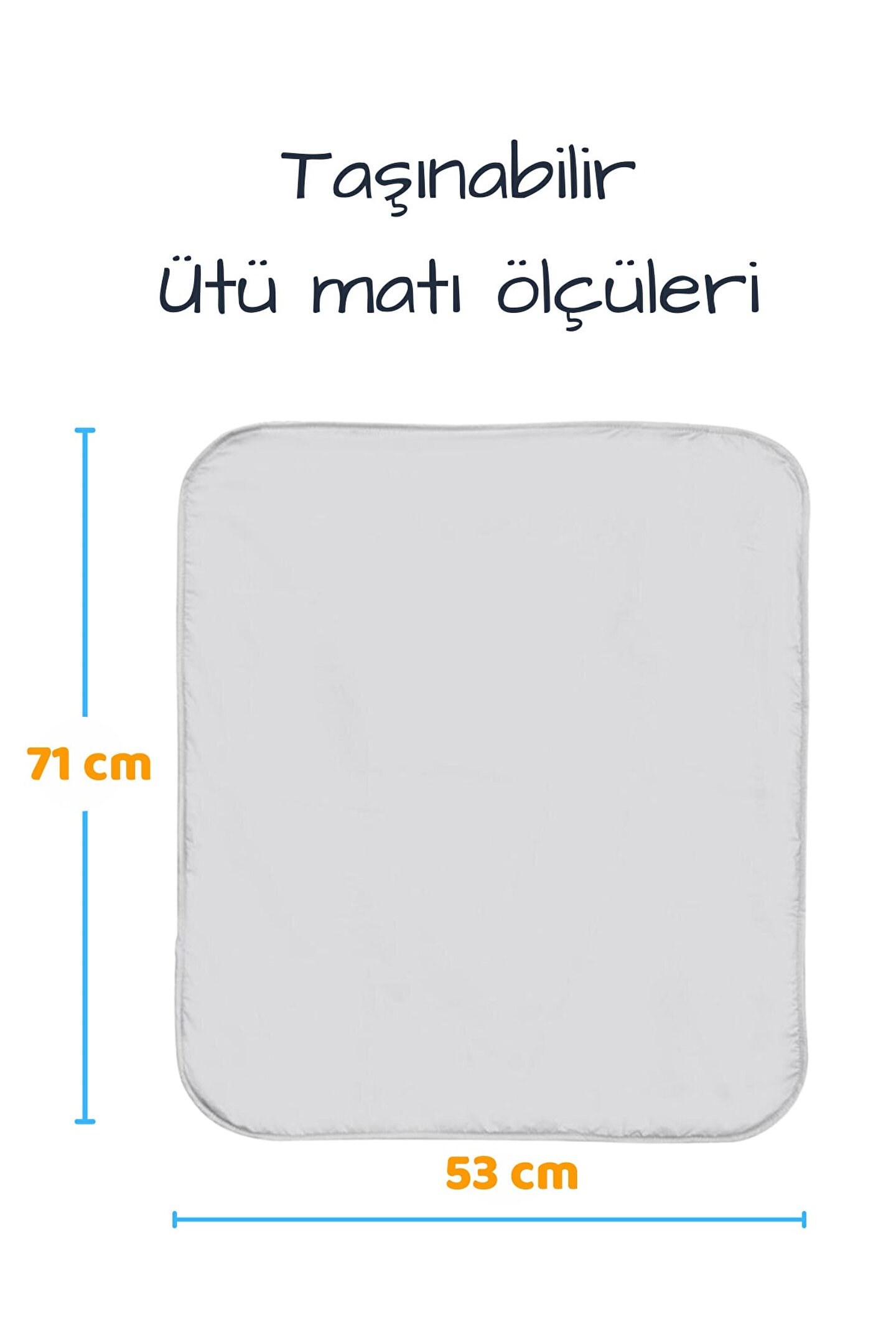 4 KATMANLI ÜTÜLEME MATI/KILIFI/ÖRTÜSÜ/BEZİ Ürün ölçüsü 53 cm en x 71 cm boydur.; ; Masa üzeri, yerde, halıda, yatakta vb tüm alanlarda rahatça ve hızlıca ütüleme yapabilirsiniz ; Ürün Gri Renktedir.; ; Malzeme: %100 Pamuk Kumaş, Kumaşta Silikon Kaplama, Sünger ve Keçe den oluşmaktadır.; ; Isı Dayanımı : 230 Derece ısıya kadar ütüleme dayanımı bulunmaktadır.; ; Yıkama: 30 Derece Hafif Yıkama Makinede yapılabilir.; Elde yıkama tavsiye edilir.; ; Laminasyon : Kumaş, Sünger ve Keçe birbirine laminasyon tekniği ile yapıştırılmaktadır.; Bu sayede üründe kayma olmaz ve buhar geçirgenliği maksimum seviyede olmaktadır.; Rahat bir ütüleme sayesinde elektrik tüketimini minumuma indiren enerji tasarruflu üründür.; ; ; 1. Katman Silikon Kaplama: Kumaşta kullanılan özel silikon apresi ile bölgesel yanık ve leke izlerini engeller.; ; 2.Katman Kumaş : % 100 Pamuk Dokumadır.; Ütüleme için özel üretilmektedir.; ; 3.Katman Sünger : 4 mm kalınlığında kalın süngerdir.; ; 4.Katman Keçe : %100 polyesterdir.; Geri dönüşüm keçesi değildir.; hammaddeden üretilmektedir.; Döküntü ve diğer hatalar ile karşılaşılmaz.; ; Kalın, Yüksek dolgulu, Türkiye standartlarının üzerinde, Premium kalite bulunan ürünümüz ile bugüne kadar ki yaşadığınız ütüleme deneyimini unutun.; Pürüzsüz yüzeyi, ısıya dayanıklılığı ve ütünün masası ve diğer tüm alanlarda üzerinde çok rahata kaydığını gördüğünüzde şaşıracaksınız.; Çevre dostu ve kimyasal kullanılmayan (Kanserojen madde ve asbestler) %100 Pamuk kumaştan üretilmiştir.; ; %100 Yerli ve Milli Üretim ve Markadır.; ;