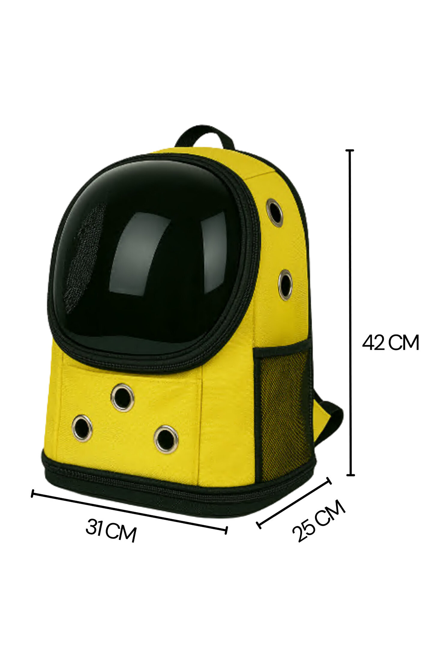 Yıkanabilir Şeffaf Kedi ve Köpek Taşıma Çantası 7 Hava Kanalı Fileli Ceplerle Pratik Kullanım Sarı