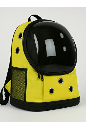 BEYLİNİ Yıkanabilir Şeffaf Kedi ve Köpek Taşıma Çantası 7 Hava Kanalı Fileli Ceplerle Pratik Kullanım Sarı