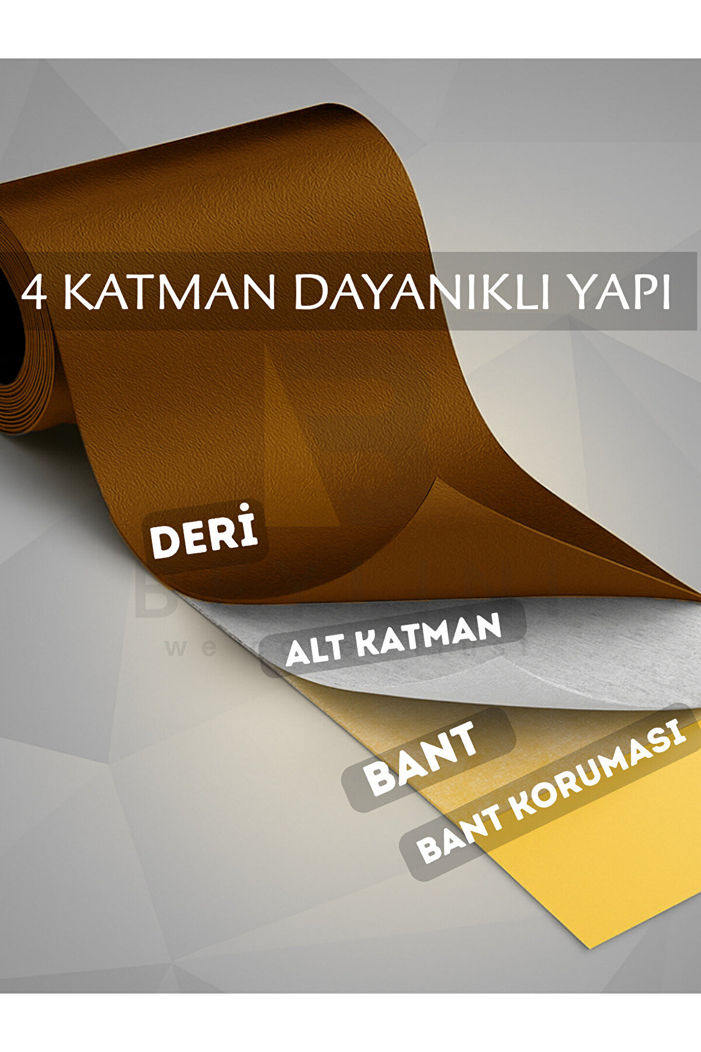 Malzeme: Yüksek Kaliteli malzeme ile üretim yapılmıştır, Kendinden yapışkanlı ürünümüzde bir sorun ile karşılaşma durumu en aza indirilmiştir.; Temizlenebilir: Deri tamir bantı ürünümüzü bir bez ile rahatlıkla temizleyebilirsiniz.; Hijyenik: 4 Katmandan Oluşan Ürünümüzde Kararma, iz bırakma, lekelenme, kolay kirlenme gibi görüntüler ile karşılaşılmaz.; Kesilebilir: Ürünü istediğiniz boyutta, istediğiniz şekilde sorunsuzca kesebilir ve istediğiniz kişiye özel, kendinize göre ayarladığınız ölçüde kullanabilirsiniz.; Kolay kullanım: Ürün yüksek kaliteli yapışkan ile kendinden yapışkanlıdır, sarılı olduğu kağıdı çıkarıp kolay bir şekilde yüzeye uygulayabilirsiniz.; Uyumluluk: Her türlü yüzeye problem olmadan sorunsuzca uygulanabilir kaliteli bantımız sayesinde düşme, atma gibi durumlar olmaz.; Su geçirmez: 4 Katmandan oluşan Deri Tamir Kiti Ürününümüz herhangi bir su ile temasta suyu engeller, arka tarafa geçiş sağlatmaz.; Tasarruf: Yeni bir ürün veya bir kaplama almak yerine olan kaplamayı en az maliyet ile eskisinden daha iyi hale getirebilirsiniz.; Uyguladığınız alana hoş bir görüntü katar.;