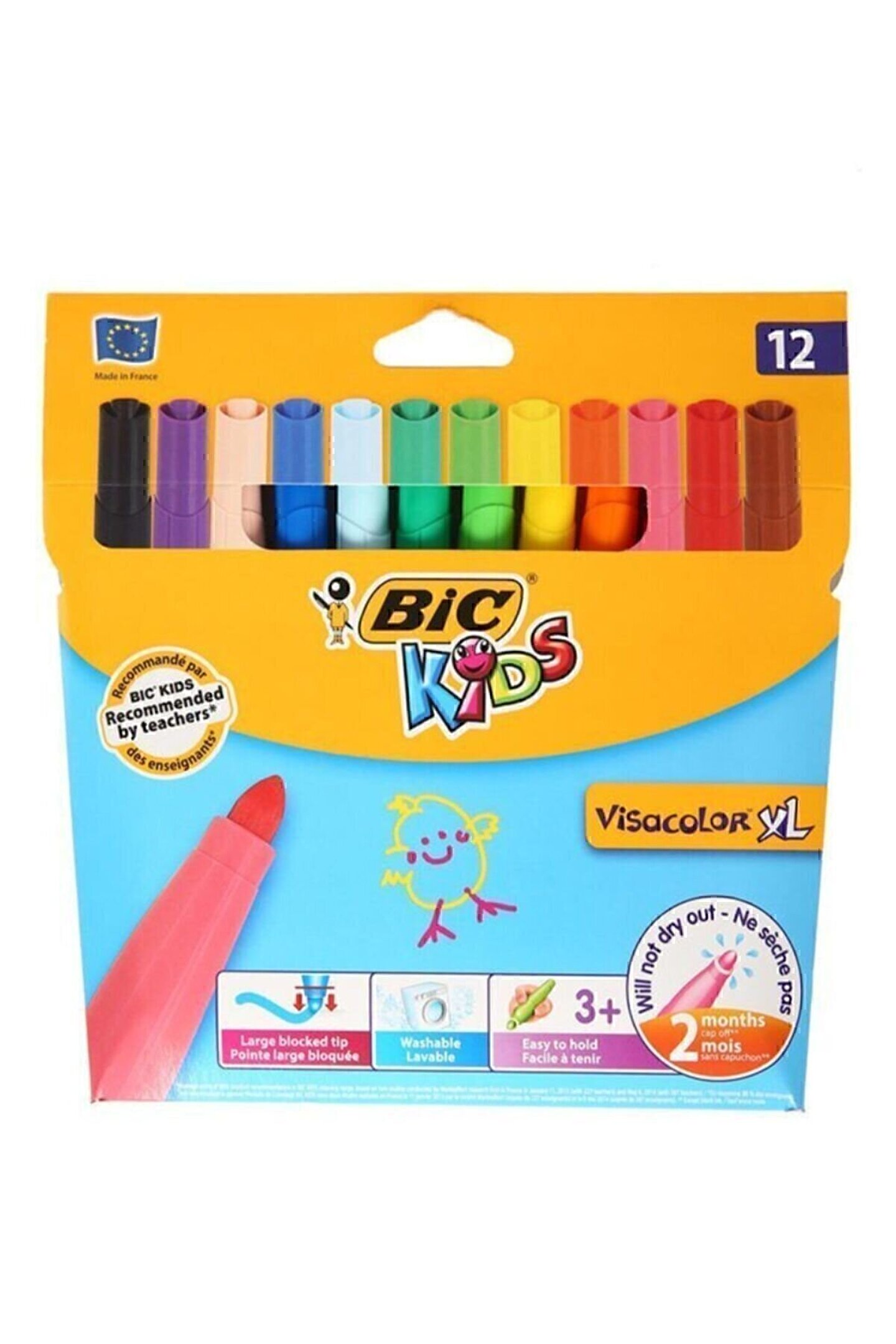 Bic Visa Yıkanabilir Jumbo Keçeli Boya Kalemi 12`li Kutu 3270220000594