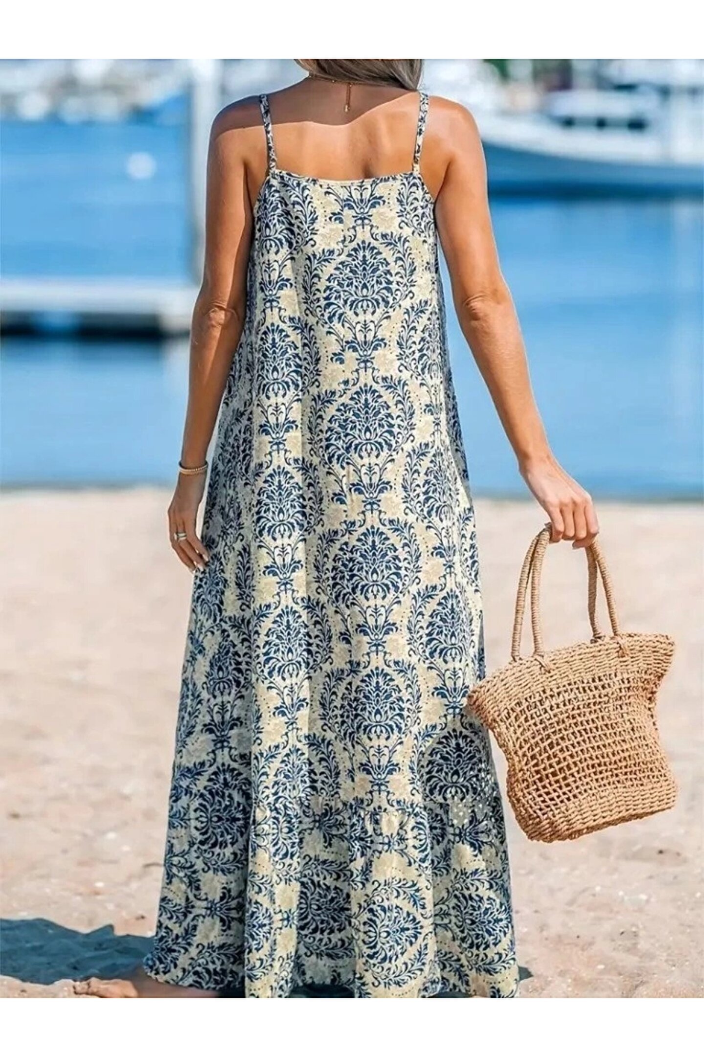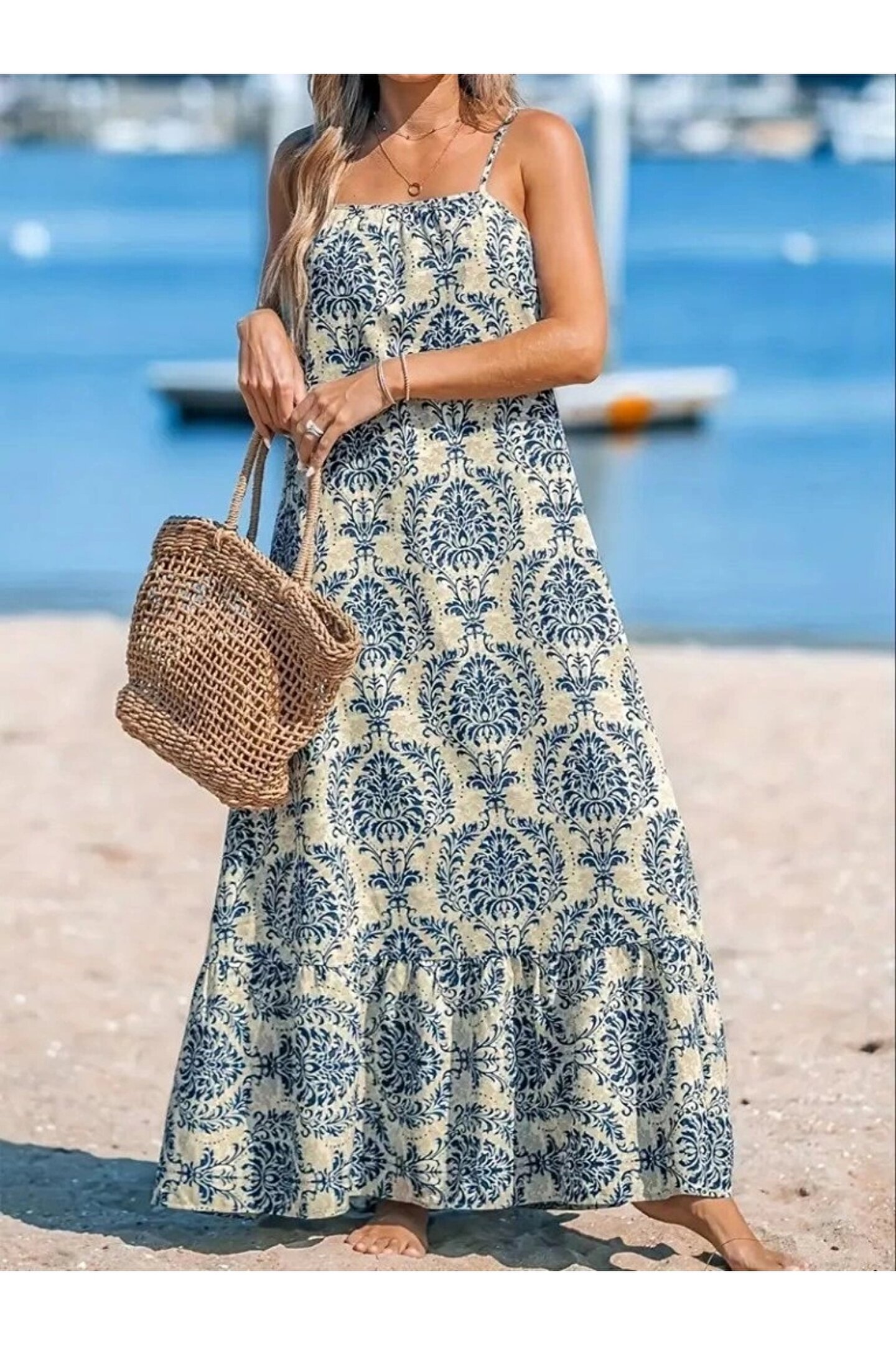 Bijuterria Kadın Ip Askılı Desenli Fırfırlı Süprem Elbise