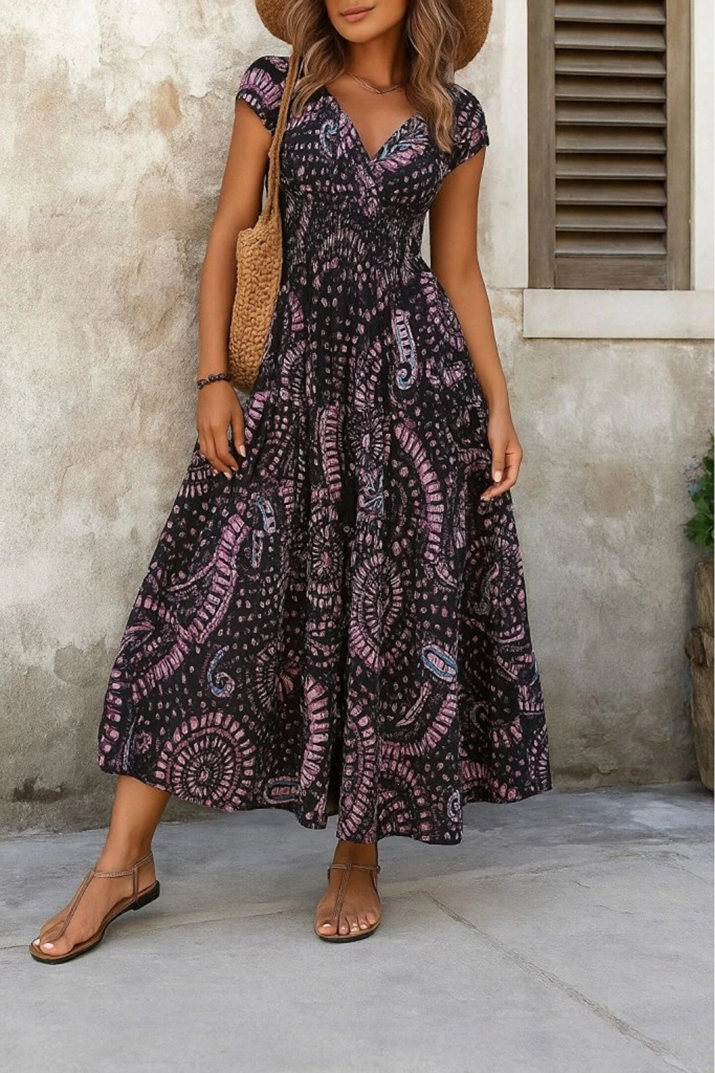 Kadın Kısa Yarasa Kanat Kollu V Yakalı Beli Büzgülü Süprem Elbise