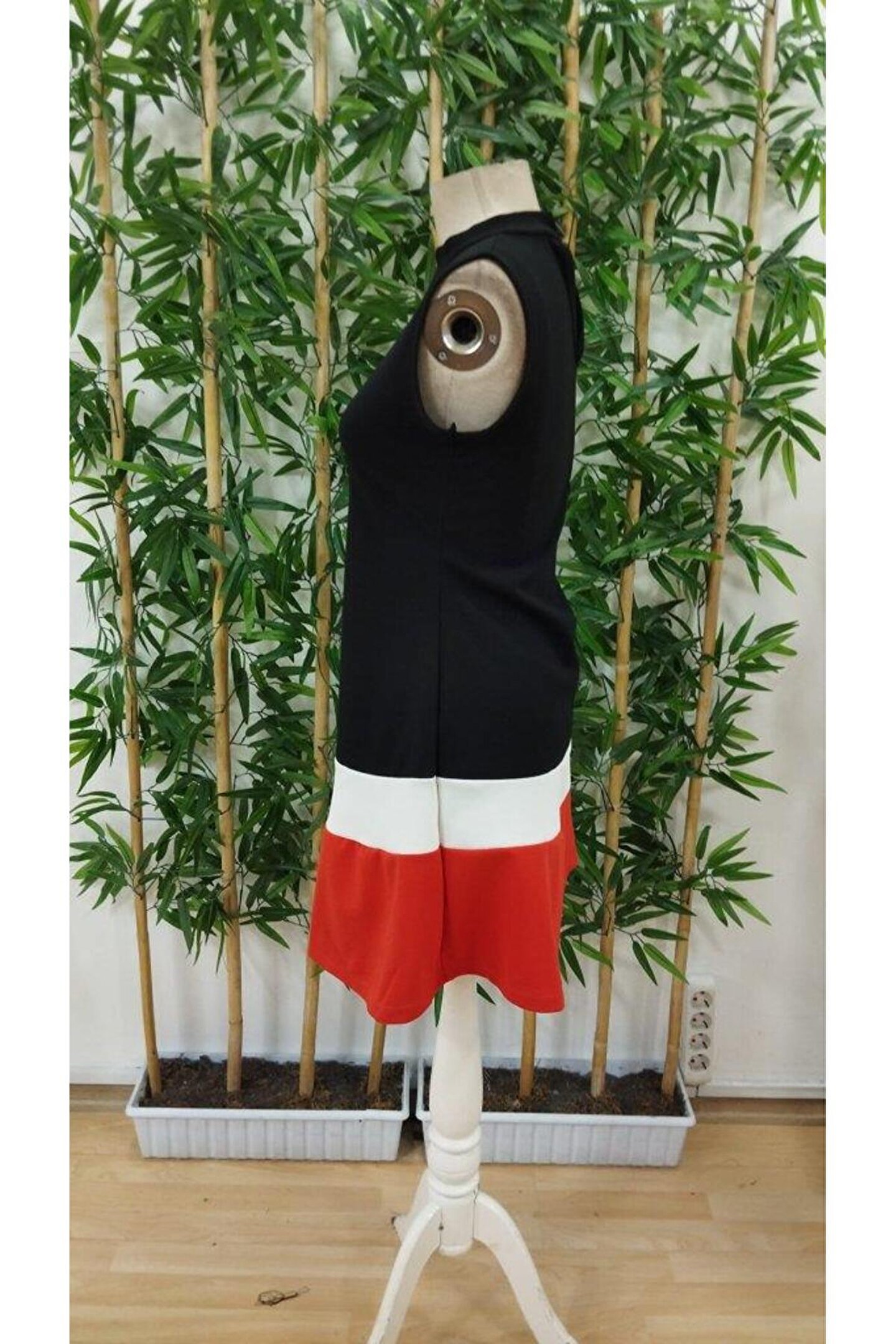 Kadın Sıfır Kol Yarı Balıkçı Yaka şerit Detaylı Ithal Krep Elbise