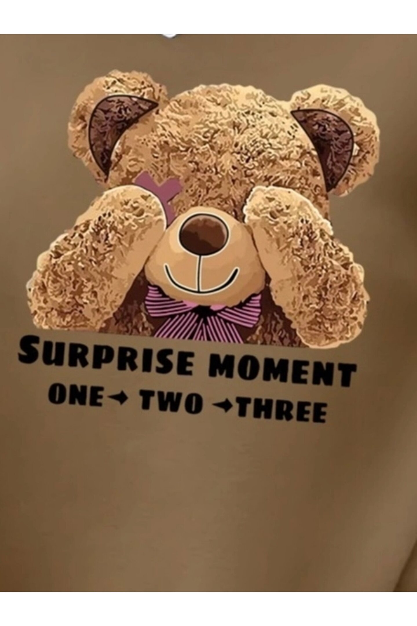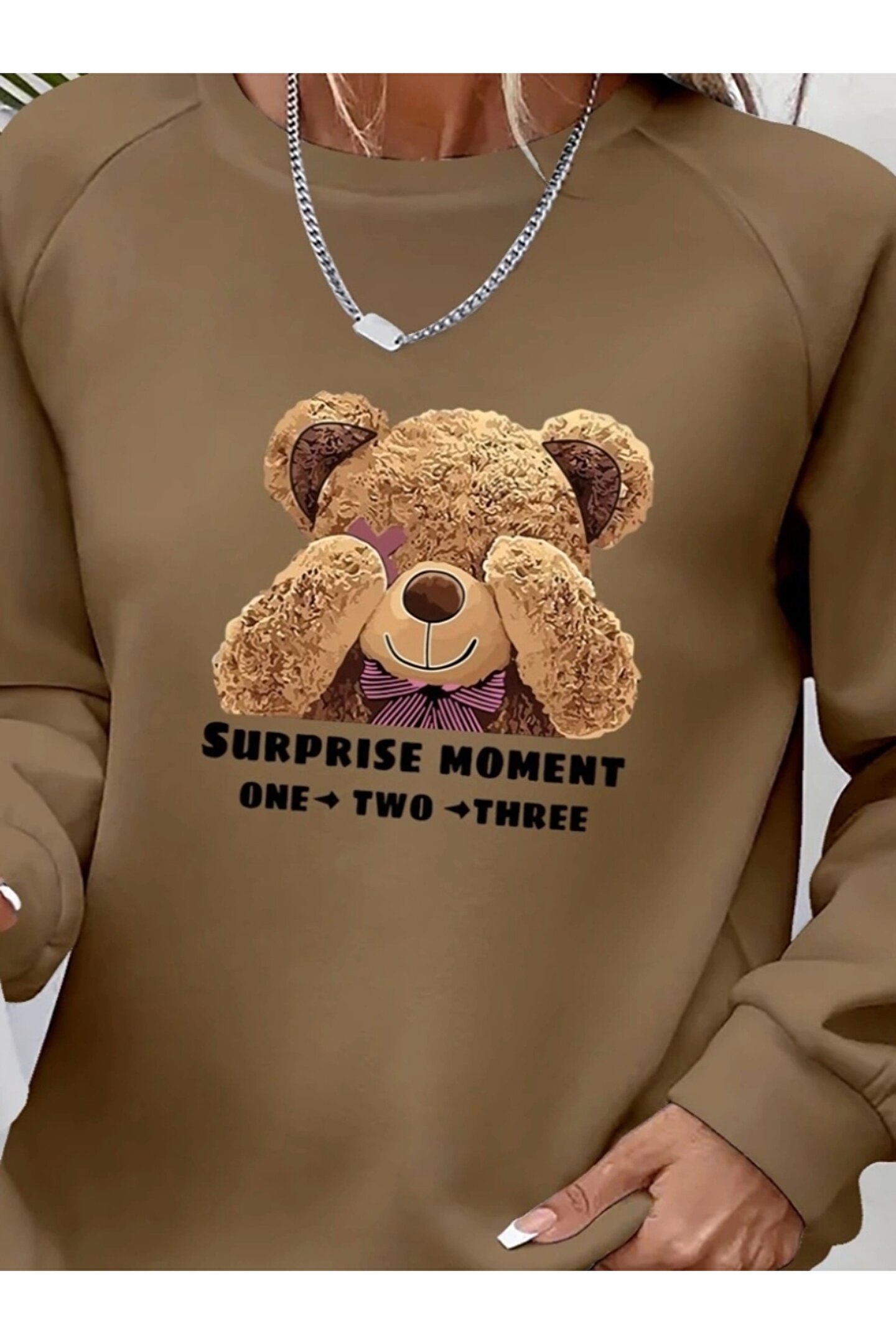 Bijuterria Kadın Uzun Kollu Bisiklet Yaka Ayıcık Desenli Viskon Iki Iplik Bluz