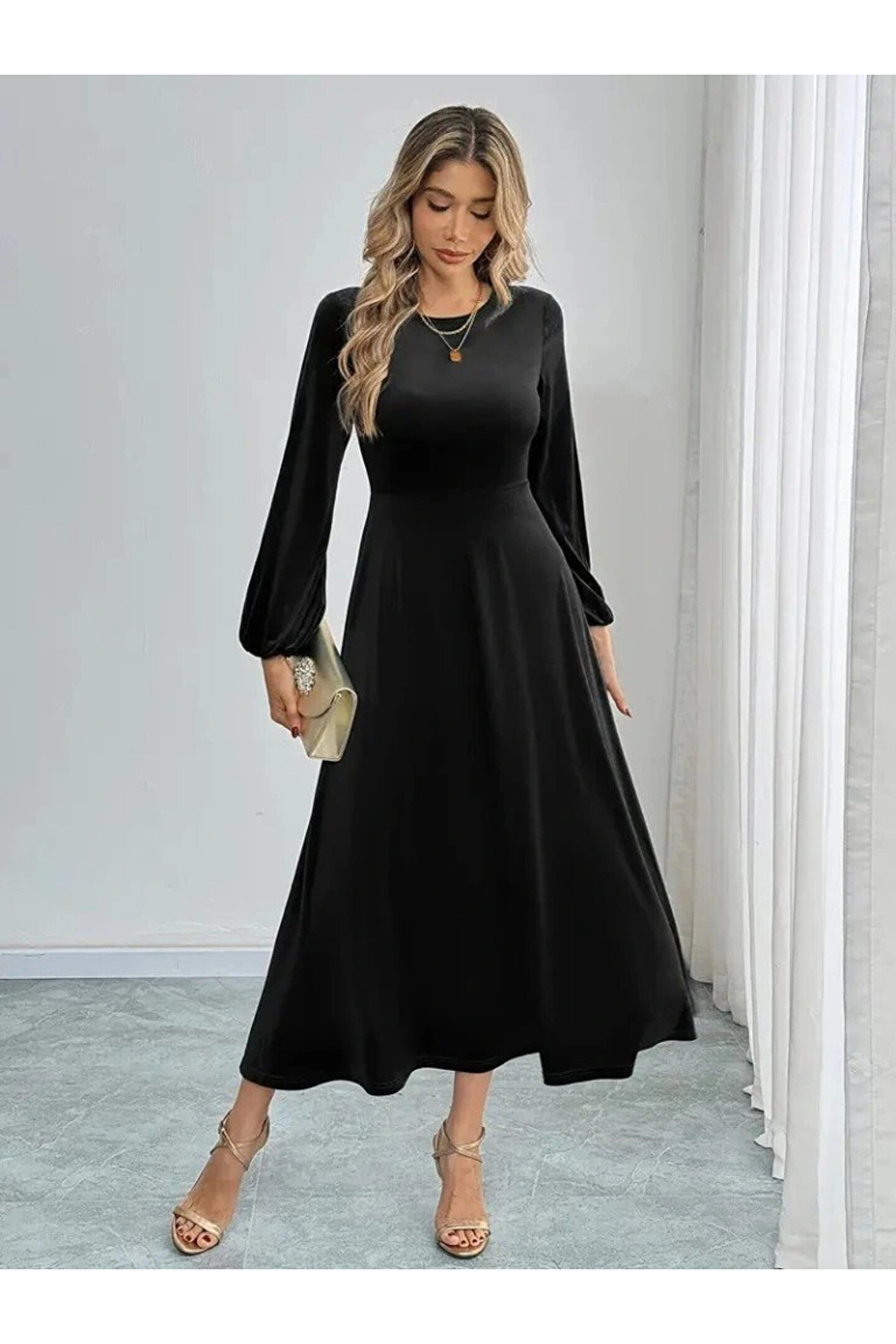Bijuterria Kadın Uzun Kollu Bisiklet Yaka Midi Kadife Elbise