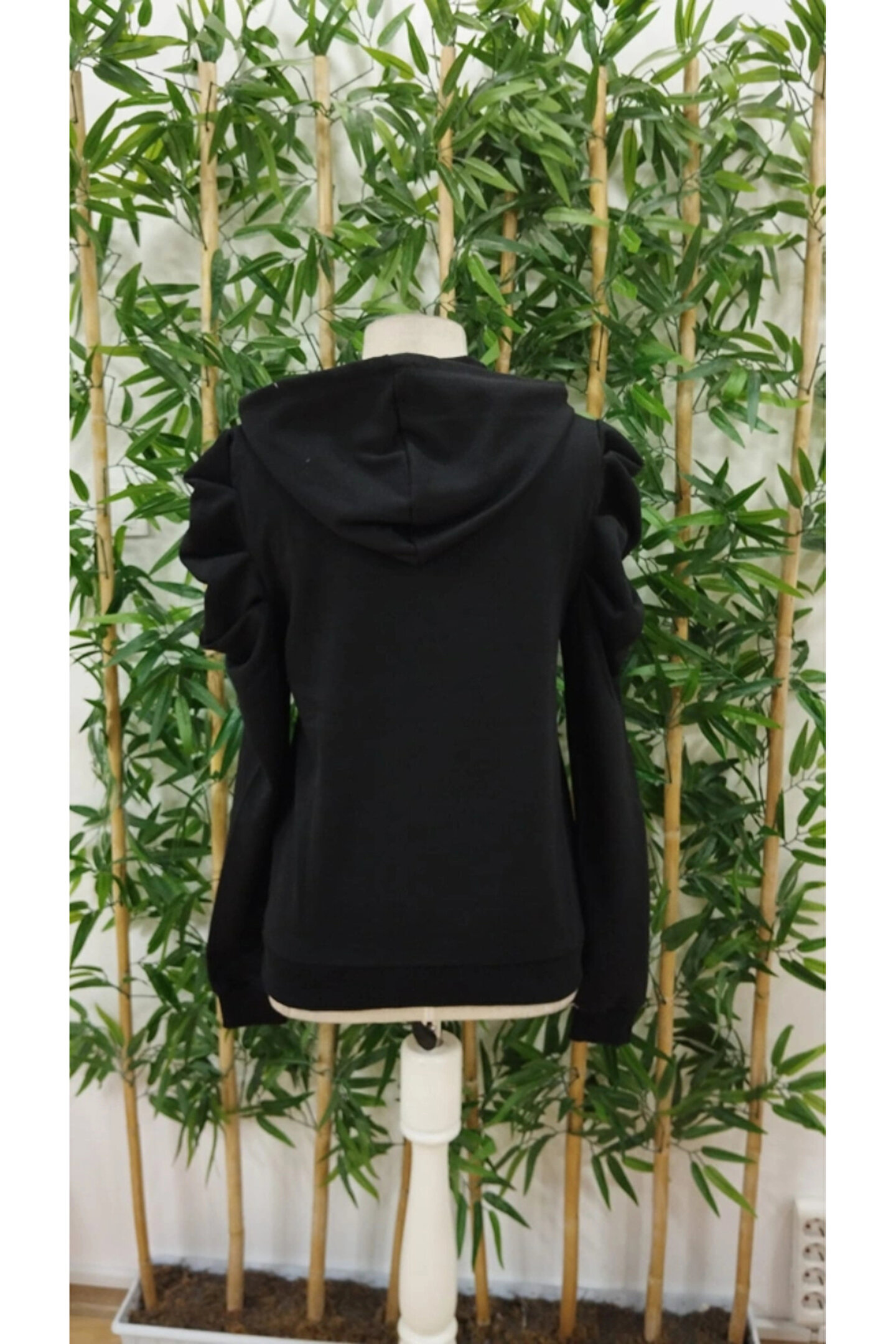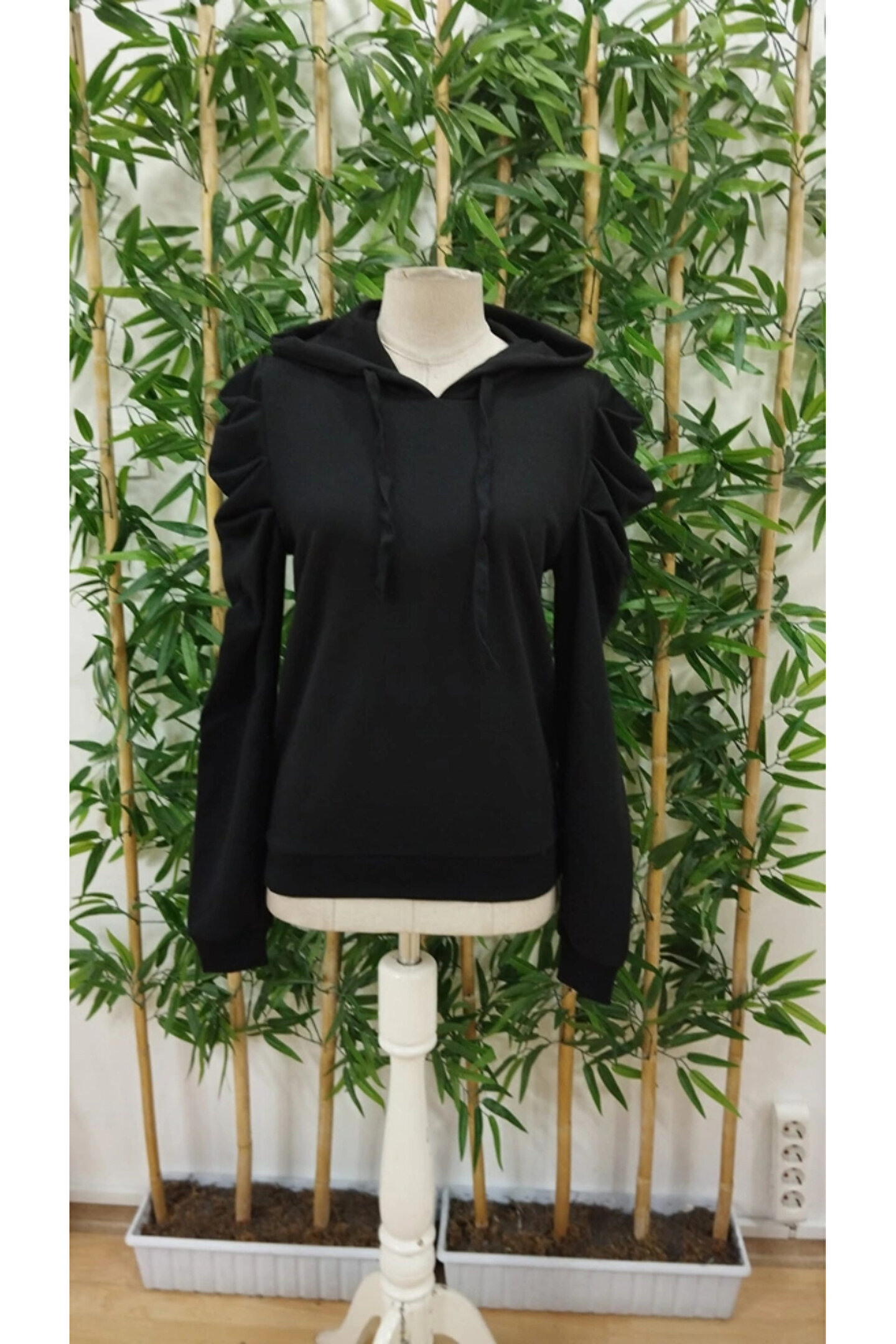 Bijuterria Kadın Uzun Kollu Kapşonlu Bağcıklı Kollarda Büzgü Detaylı Iki Iplik Bluz