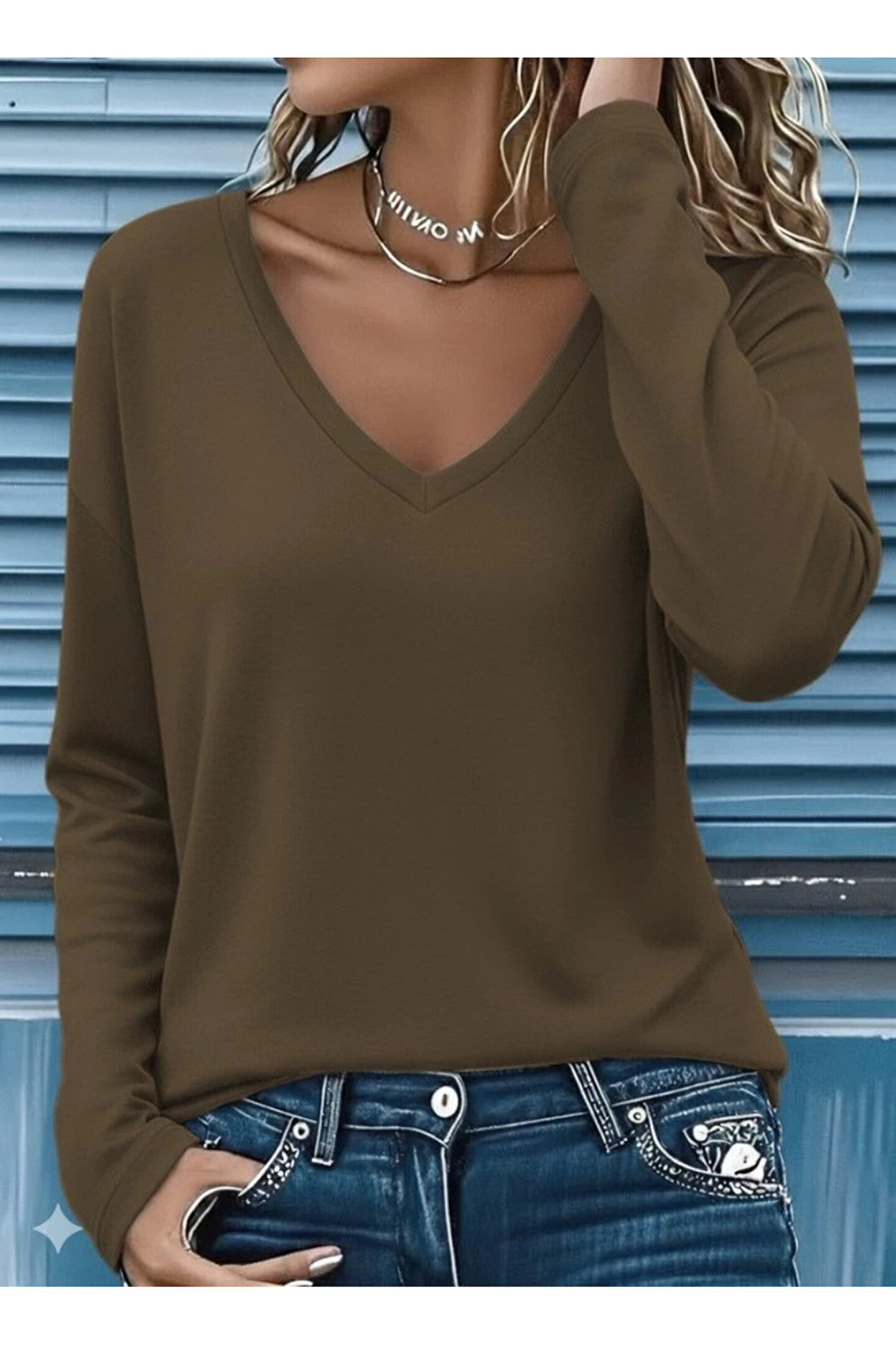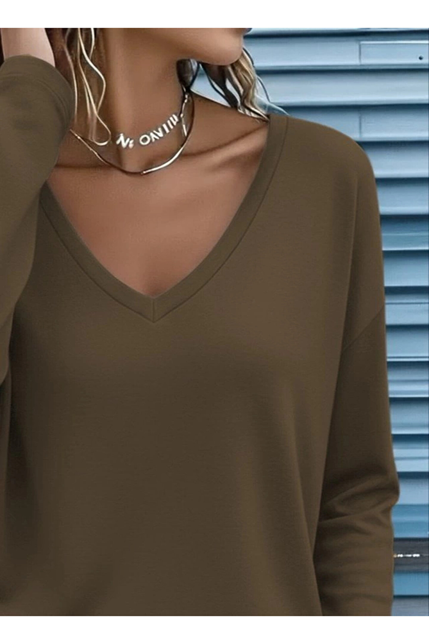 Bijuterria Kadın Uzun Kollu V Yakalı Viskon Iki Iplik Bluz
