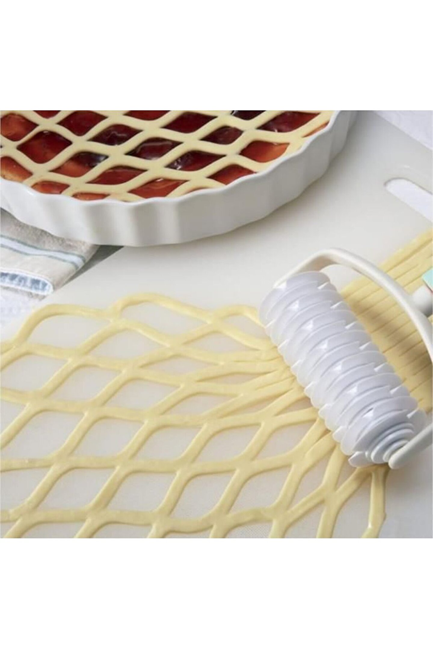 Kafes Şekilli Hamur Kesici Ve Şekillendirici Pizza , Tart, kurabiye vb lezzet hazırlarken işinizi kolaylaştırır.; Bu el aletleri, mutfaklarımızda olmazlarsa olmazlarındandır.; Ürün, Son Derece Kolay Kullanımlıdır, Sanki Bir Boya Rulosu Gibi Sadece Döndürerek Hamuza Kolayca Şekil Verebilirsiniz.; Bu Yolla Enfes Milföy Ürünleri Yapabilir, tıcılığınızı Kullanarak, Farklı Şekil Ve Görünümlerde Pasta, Kurabiye, Hamur Tatlıları, Turtalar Ve Kekler Hazırlayabilirsiniz.; Mutfakta Zaman Geçirmeyi Seven Herkesin Keyifle Kullanabileceği Bir Alettir.; Bulaşık Makinesinde Yıkanabilir Olması Da, Ürünün Bir Başka İyi Özelliğidir.; Böylece Temizliği İle De Zaman Kaybetmenize Gerek Kalmaz.; Hamur Kesici Hamur Silindiri Gıda Temasına Uygun Plastik Türünden Üretilerek İnsan Sağlığına Zarar Verici Maddeler İçermez.; Ürün Ölçüleri : 12 X 19 cmRenk : BeyazPaket İçeriği : 1 Adet Kafes Şekilli Hamur Kesici Ve Şekillendirici Silindir