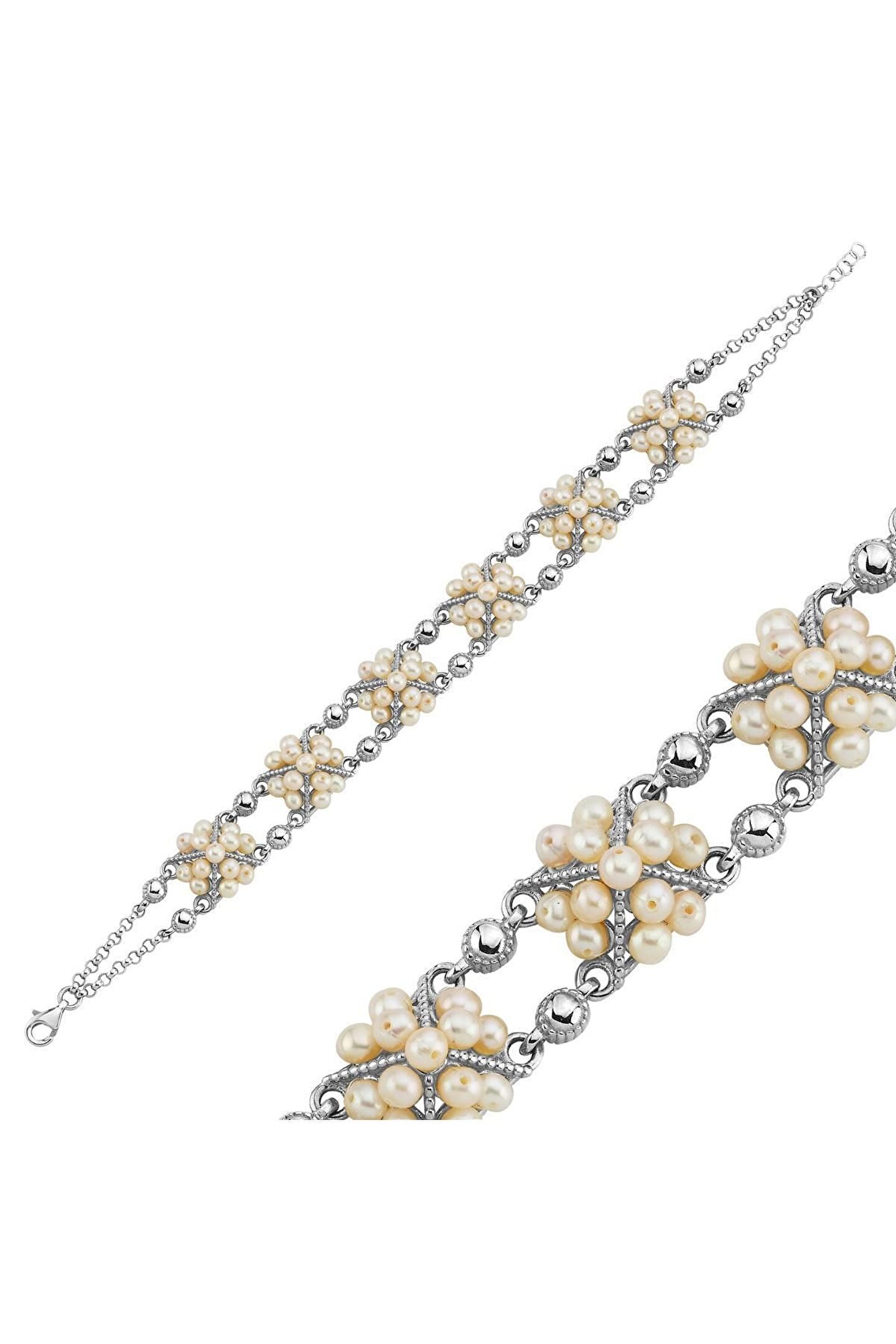 14 Ayar Altın 3 mm Piramit Model Doğal İnci Bileklik
