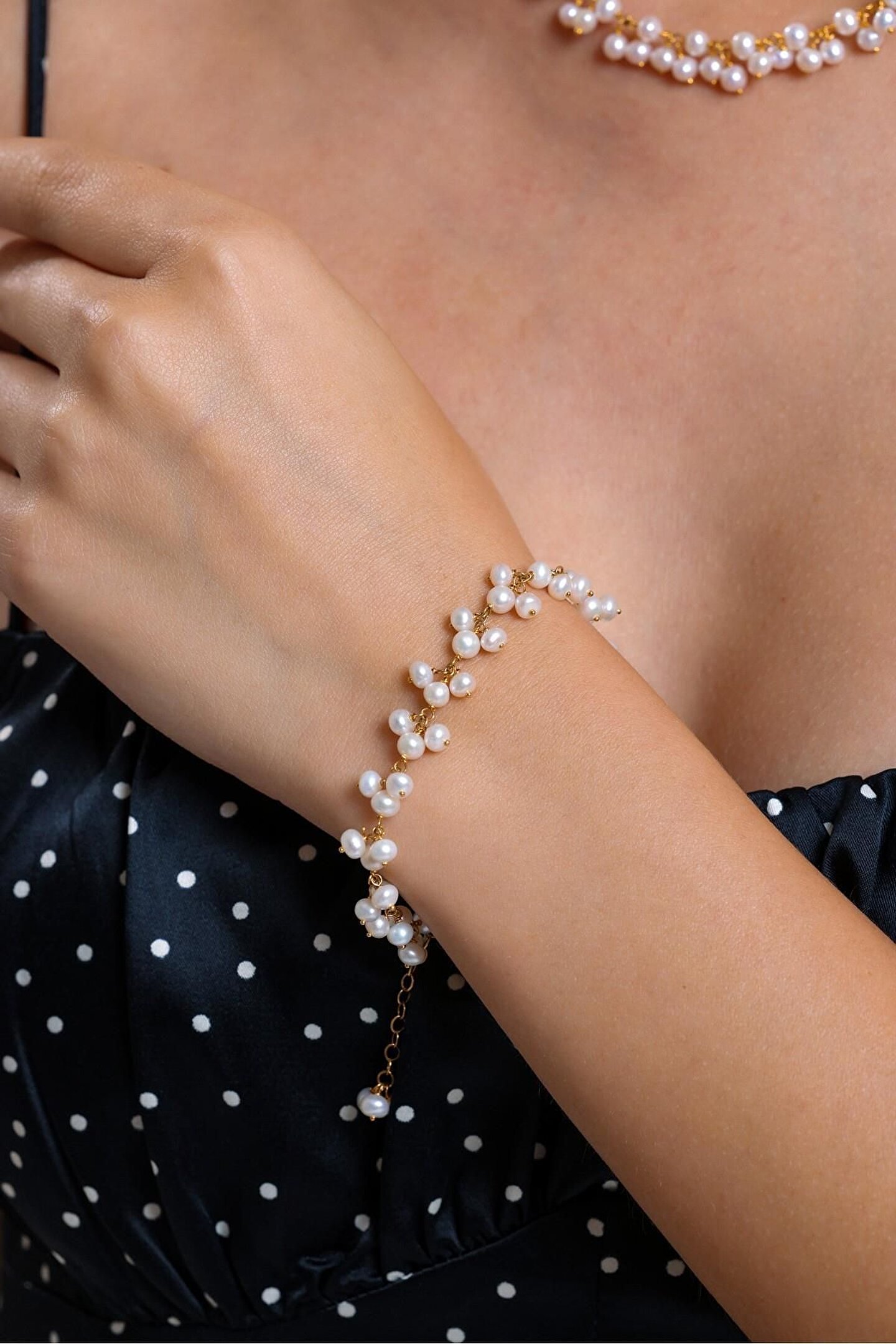 14 Ayar Altın 4 mm Sallantılı Doğal İnci Bileklik