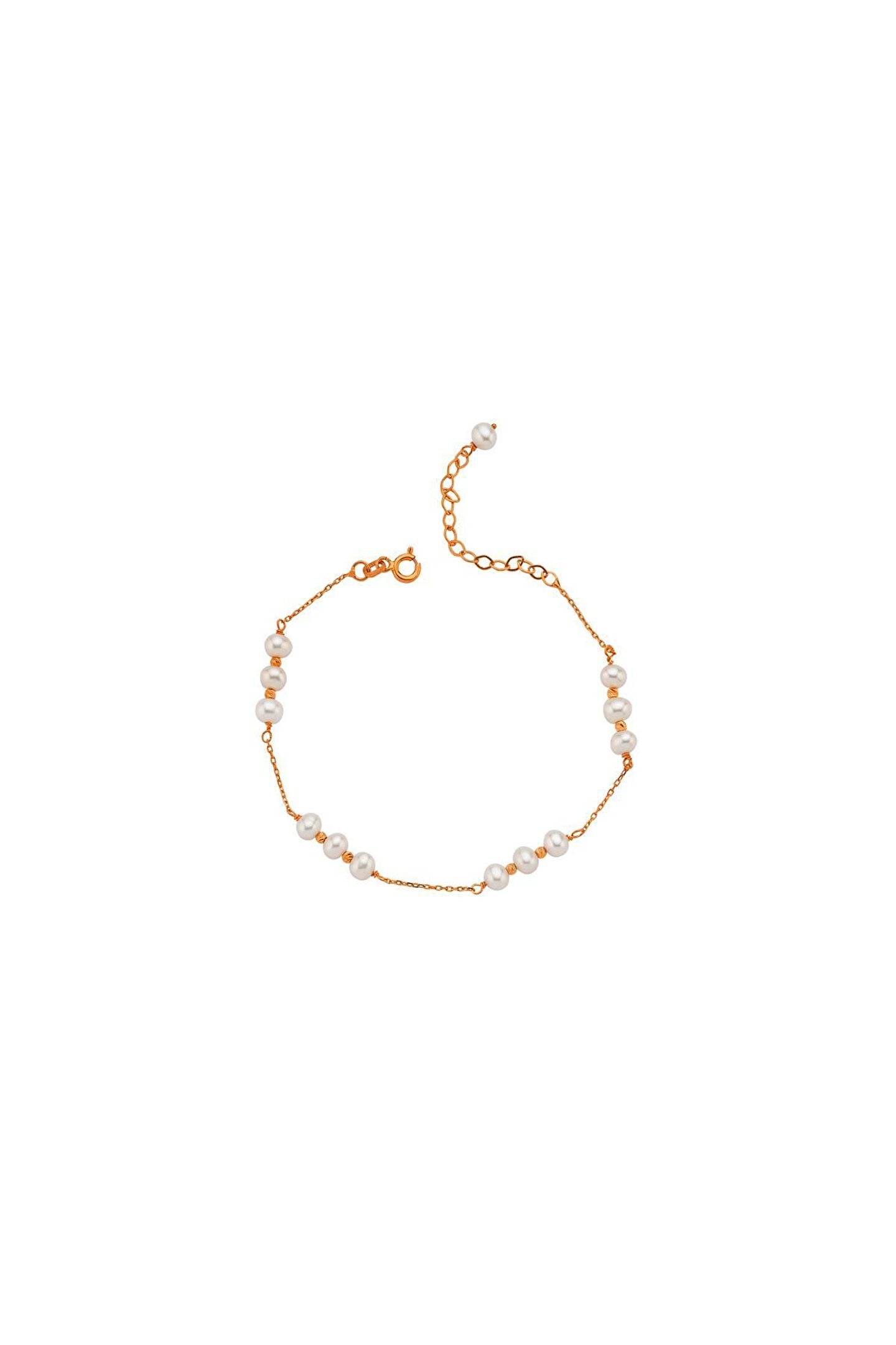 14 Ayar Altın 4 mm Üç İnci Dorika Toplu Doğal İnci Bileklik