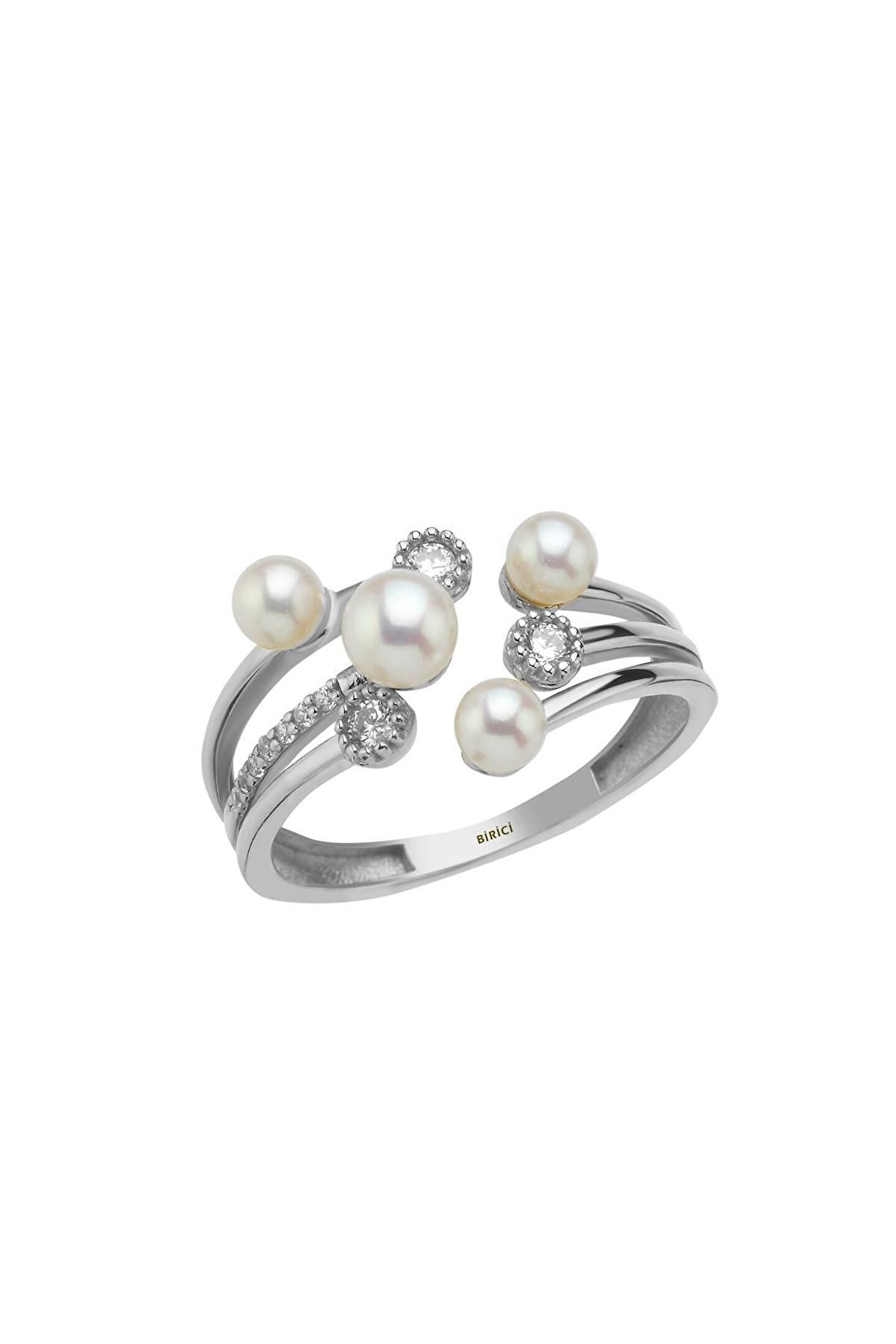 14 Ayar Altın 4 mm Zirkon Taşlı Doğal İnci Yüzük
