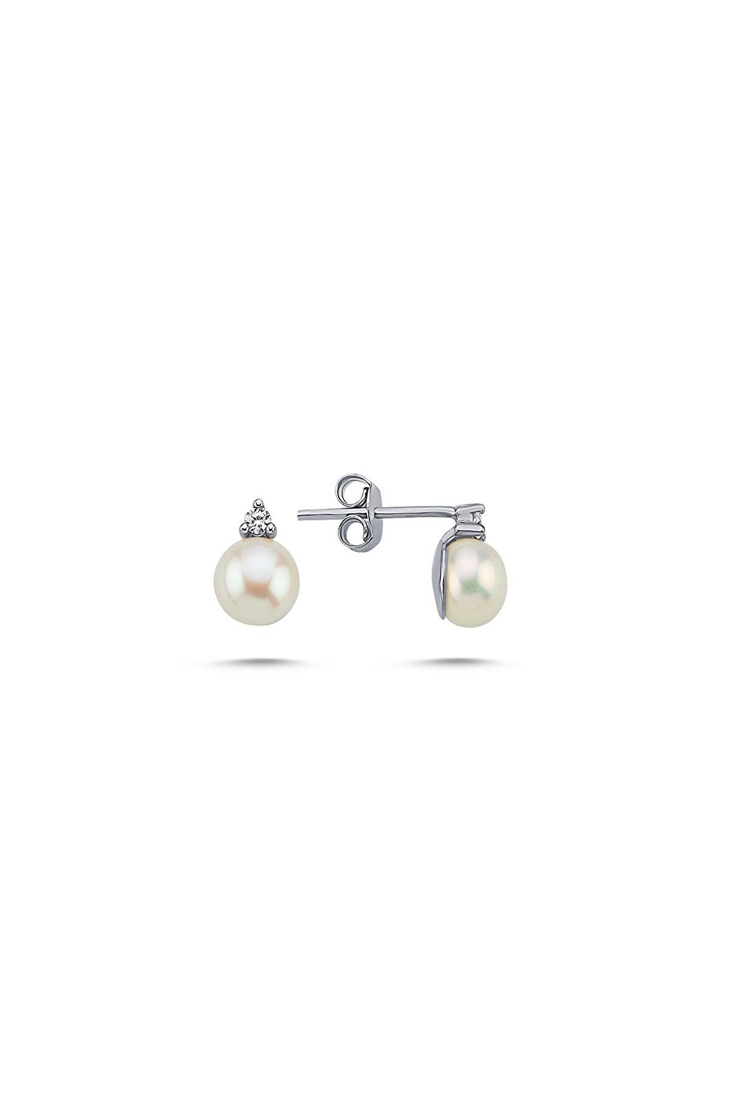 14 Ayar Altın 5 mm Doğal İncili 0,08 Ct Pırlantalı Küpe