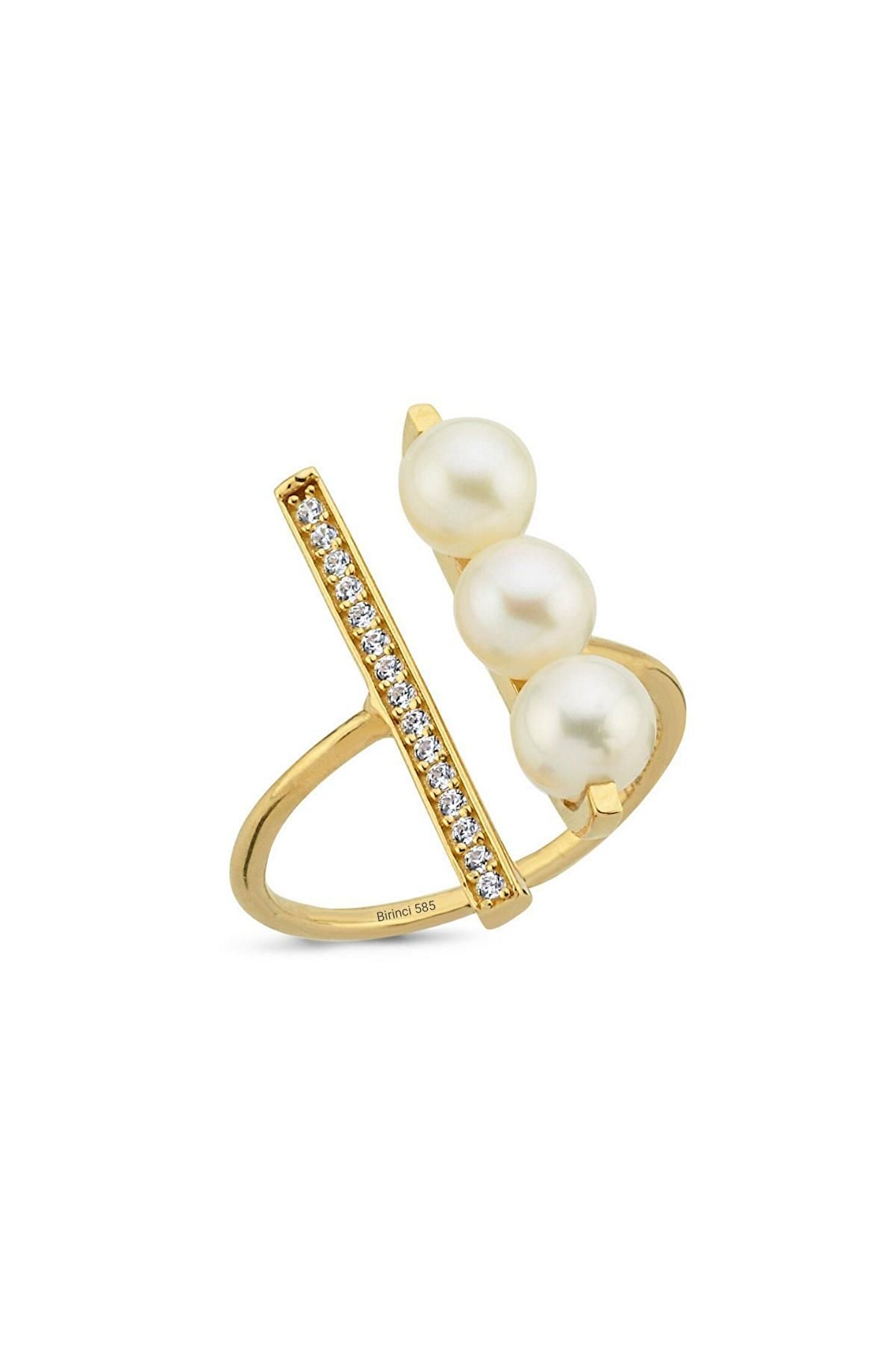 14 Ayar Altın 5 mm Doğal Üç Sıralı İncili Yüzük