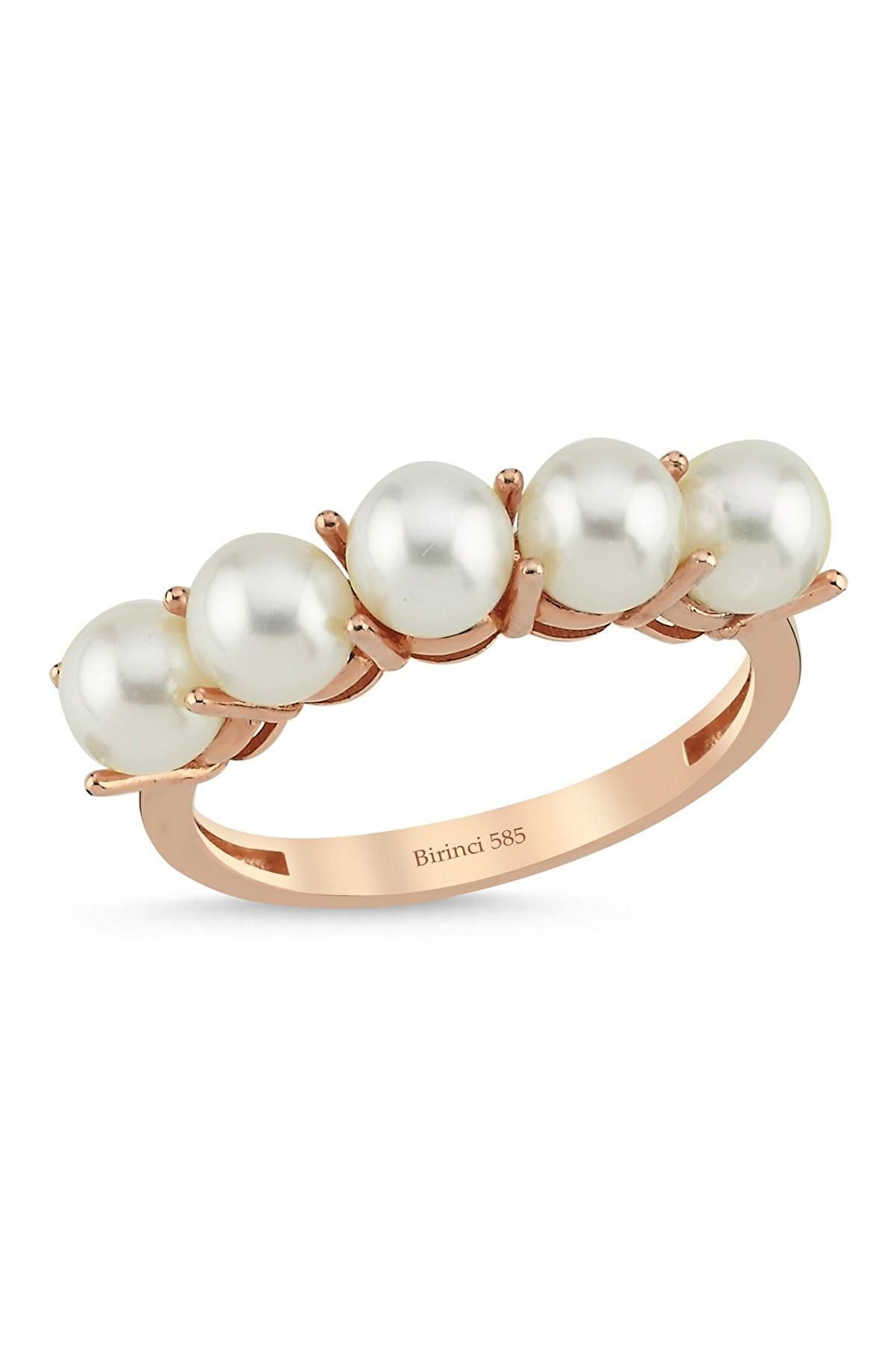 14 Ayar Altın 5 mm Large Beş Doğal İncili Yüzük