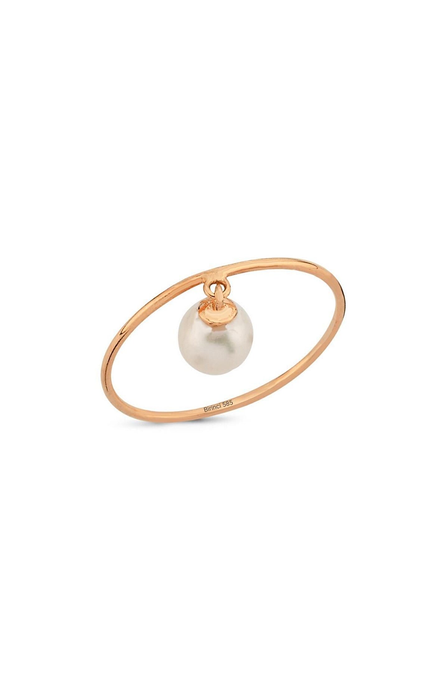 14 Ayar Altın 6 mm Doğal İnci Sallantılı Yüzük