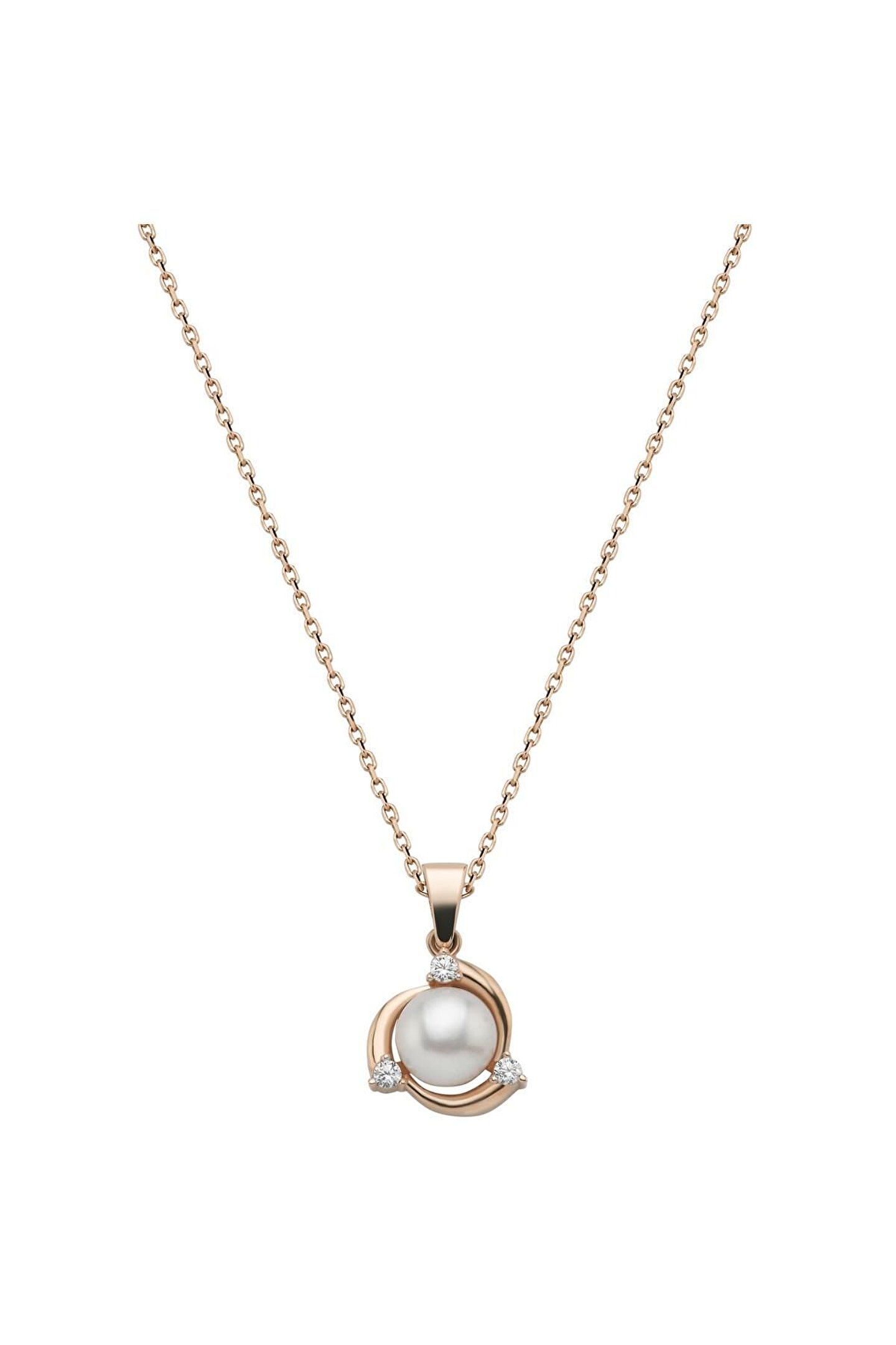 14 Ayar Altın 6 mm Zirkon Taşlı Doğal İnci Kolye