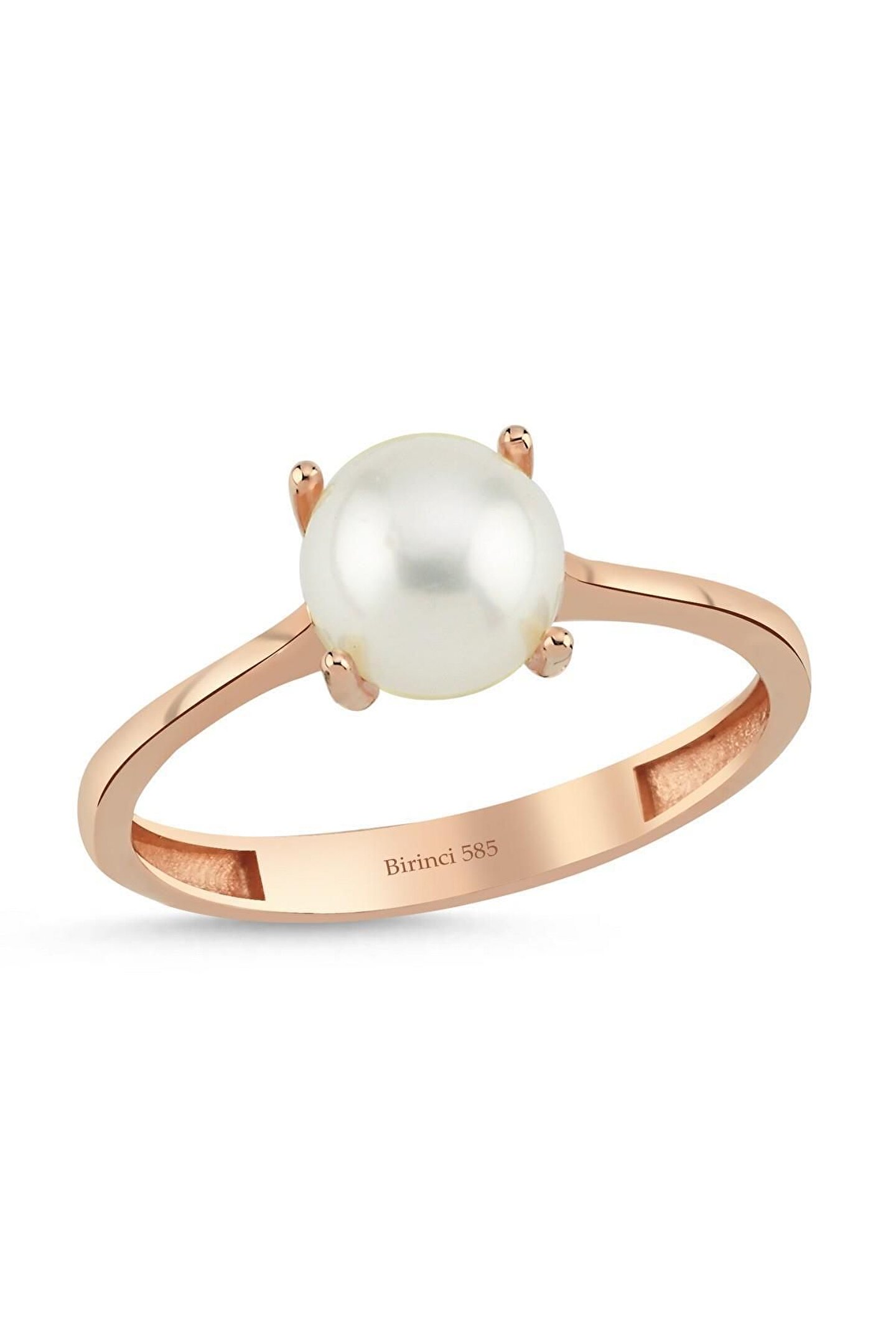 14 Ayar Altın 7 mm Large Doğal İnci Tek Taş Modelli Yüzük
