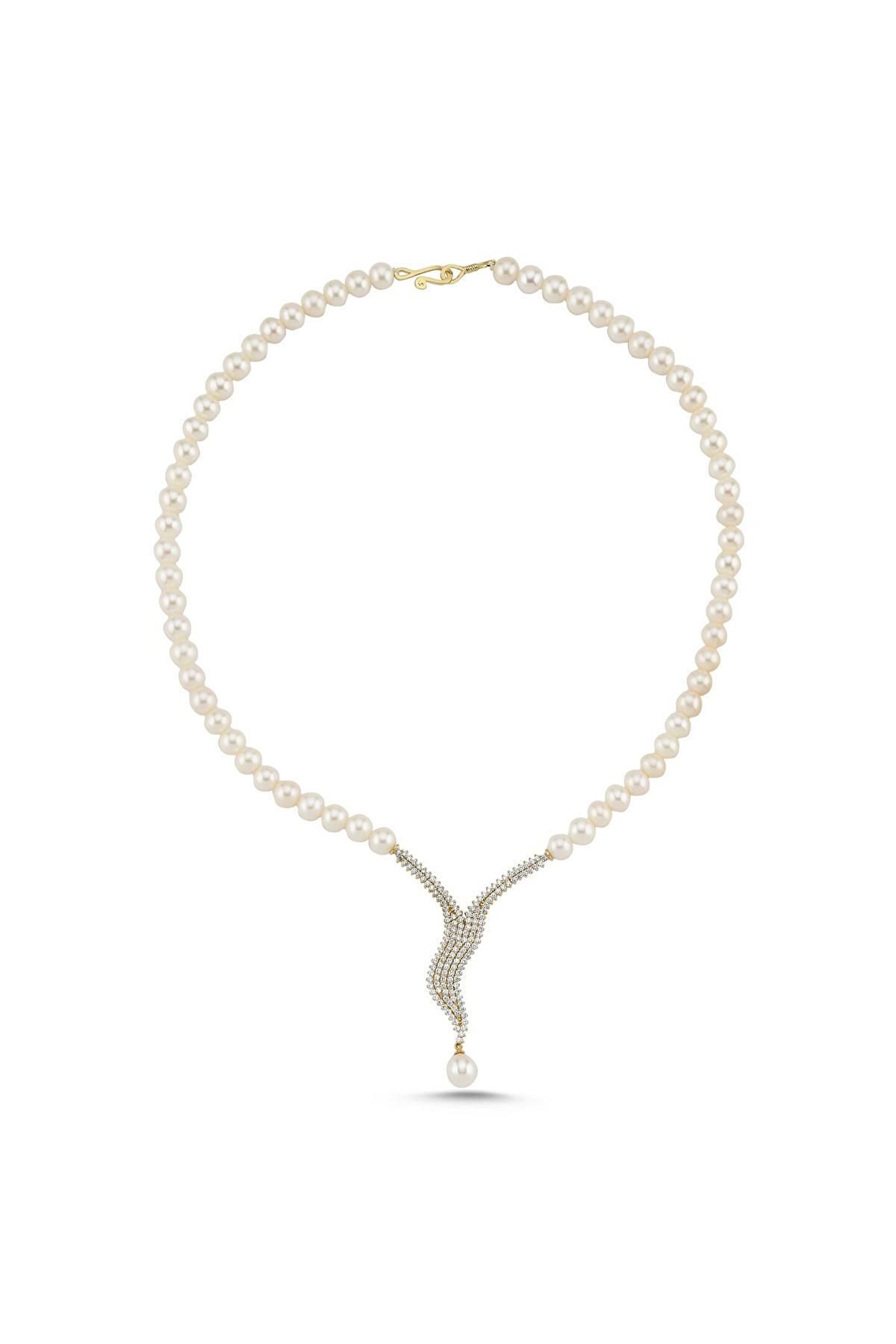 14 Ayar Altın 7 mm Su Yolu Taşlı Doğal İnci Kolye