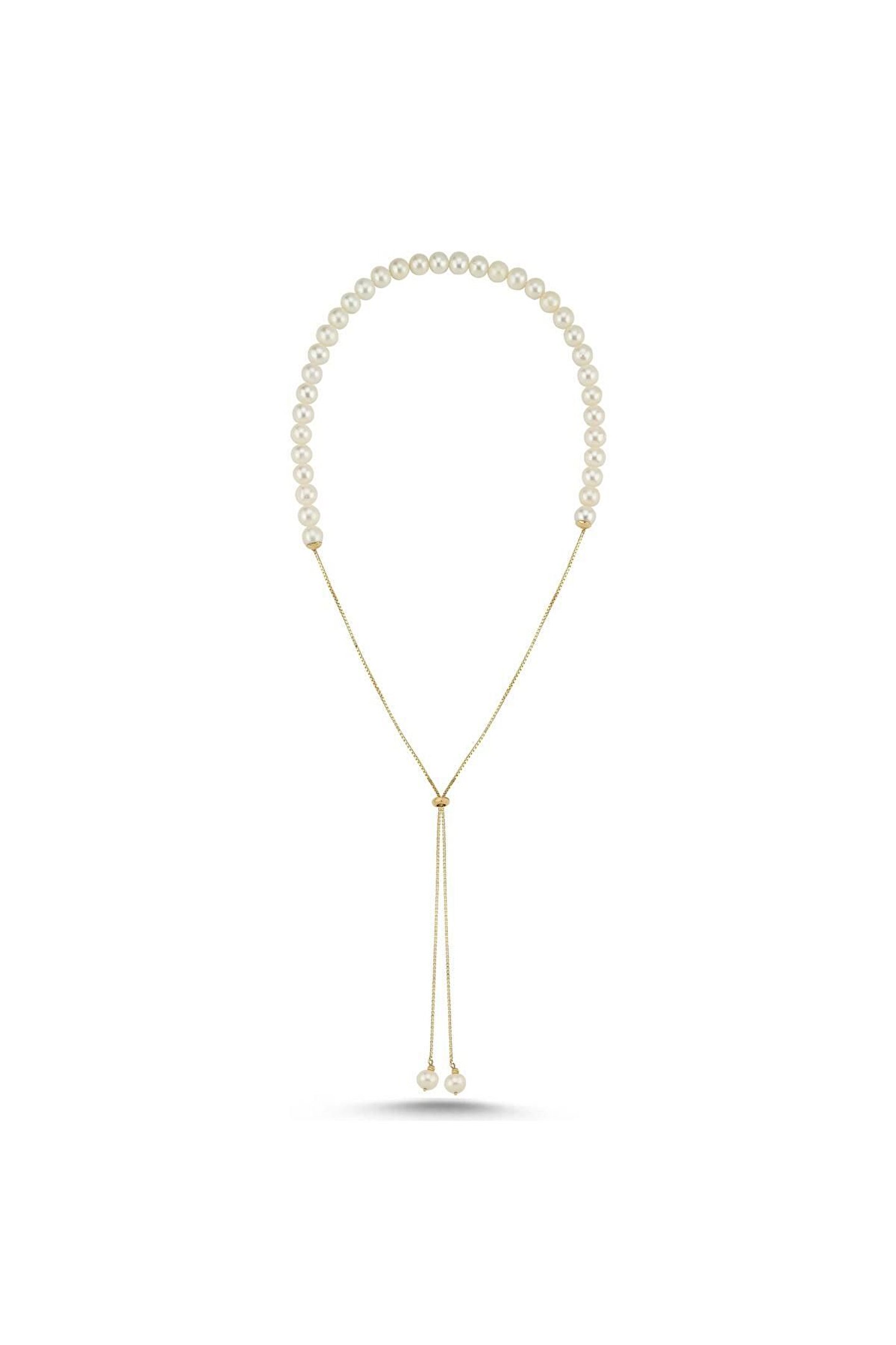 14 Ayar Altın 8 mm Asansör Zincirli Doğal İnci Kolye