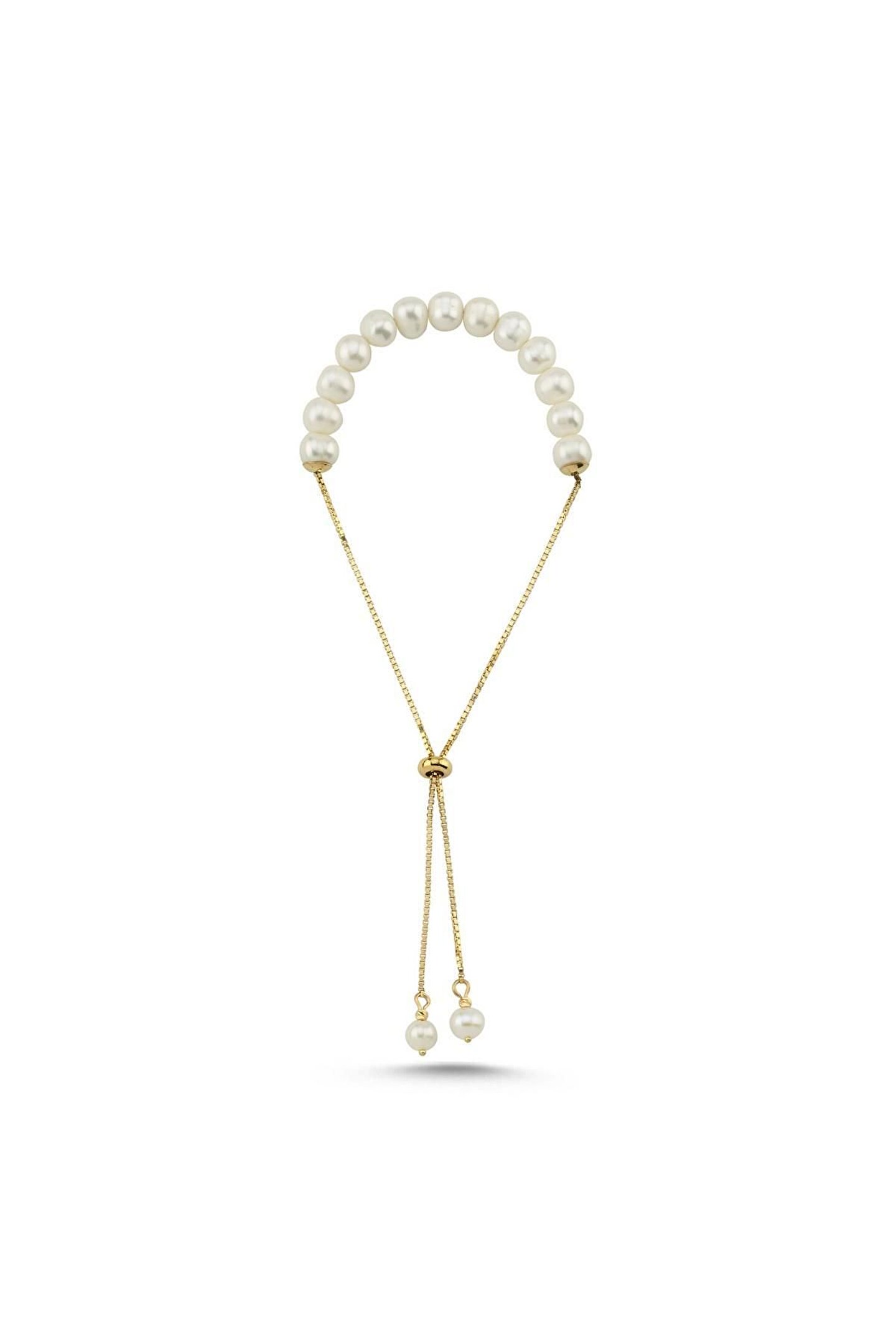14 Ayar Altın 8 mm Doğal İnci Asansörlü Bileklik