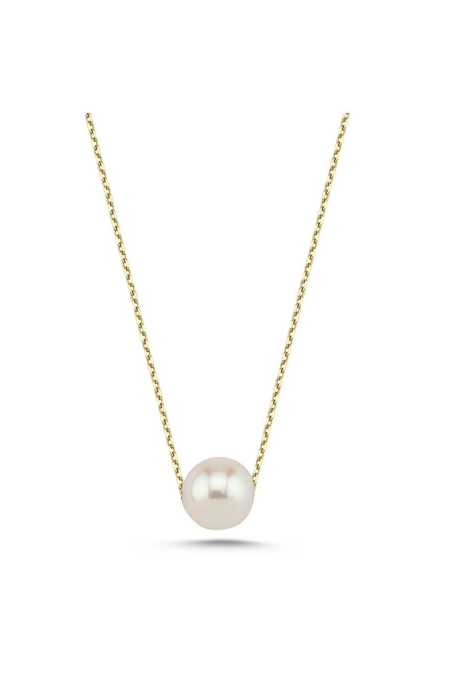 14 Ayar Altın 8 mm Tek Taneli Doğal İnci Kolye