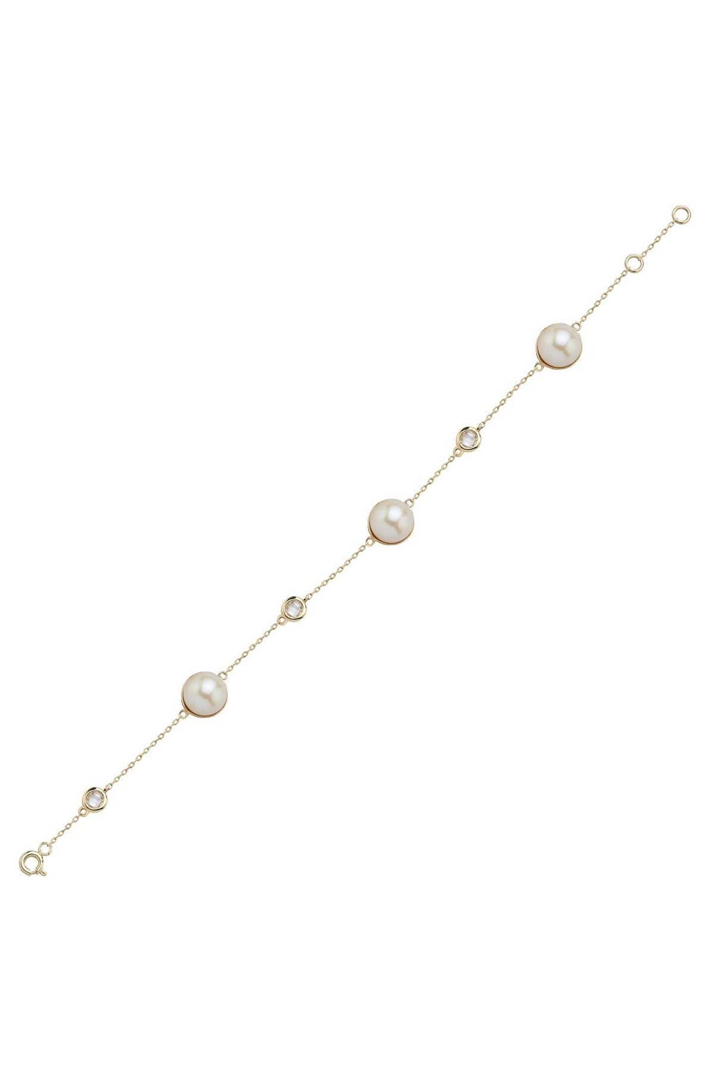 14 Ayar Altın 9 mm Üç Doğal İncili Zirkon Taşlı Bileklik