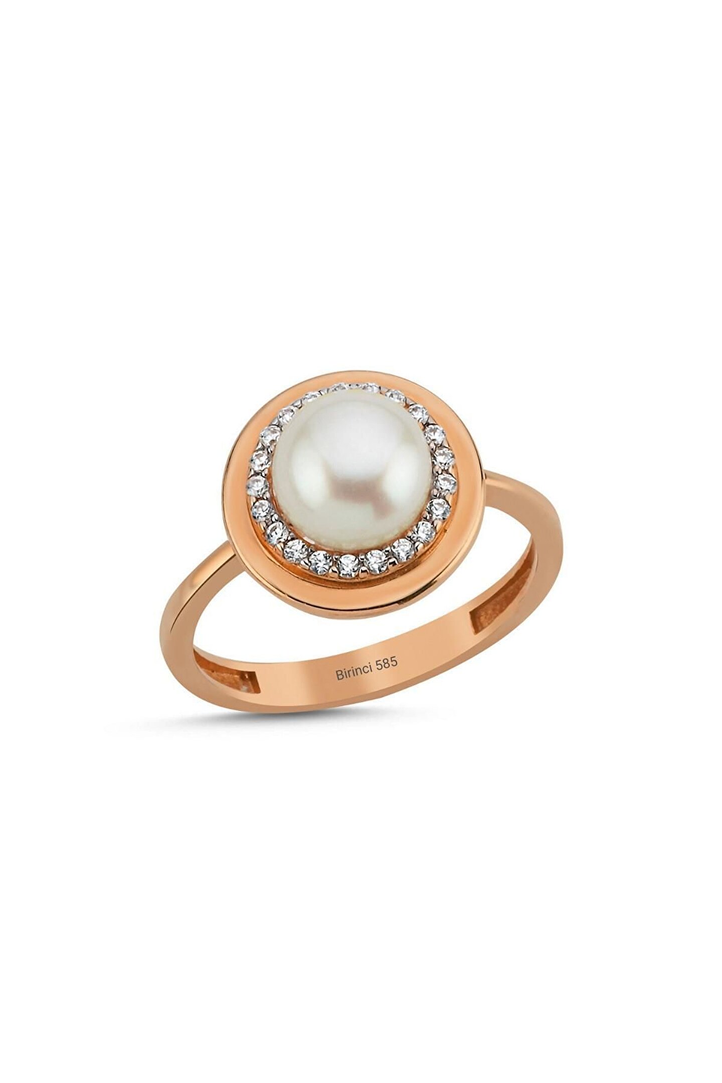 14 Ayar Altın Doğal İncili Zirkon Taşlı Yüzük