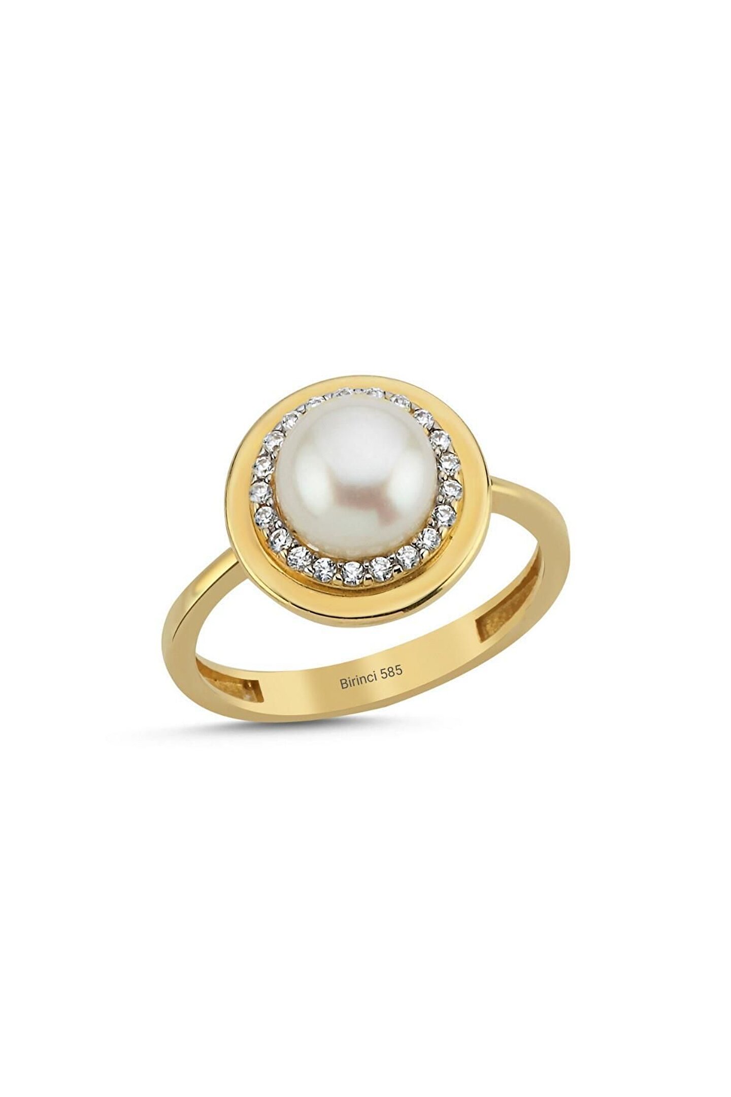 14 Ayar Altın Doğal İncili Zirkon Taşlı Yüzük