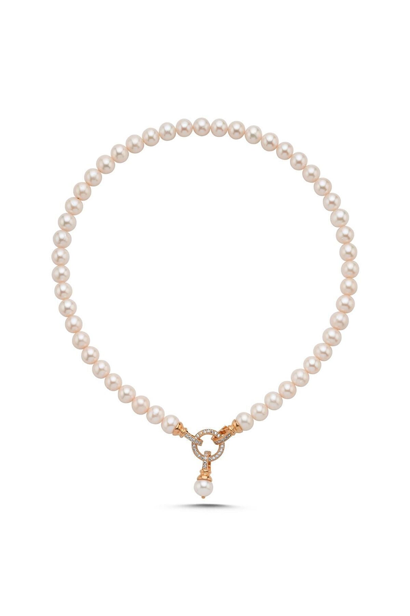 925 Ayar Gümüş 8 mm Halka Kilitli Doğal İnci Kolye