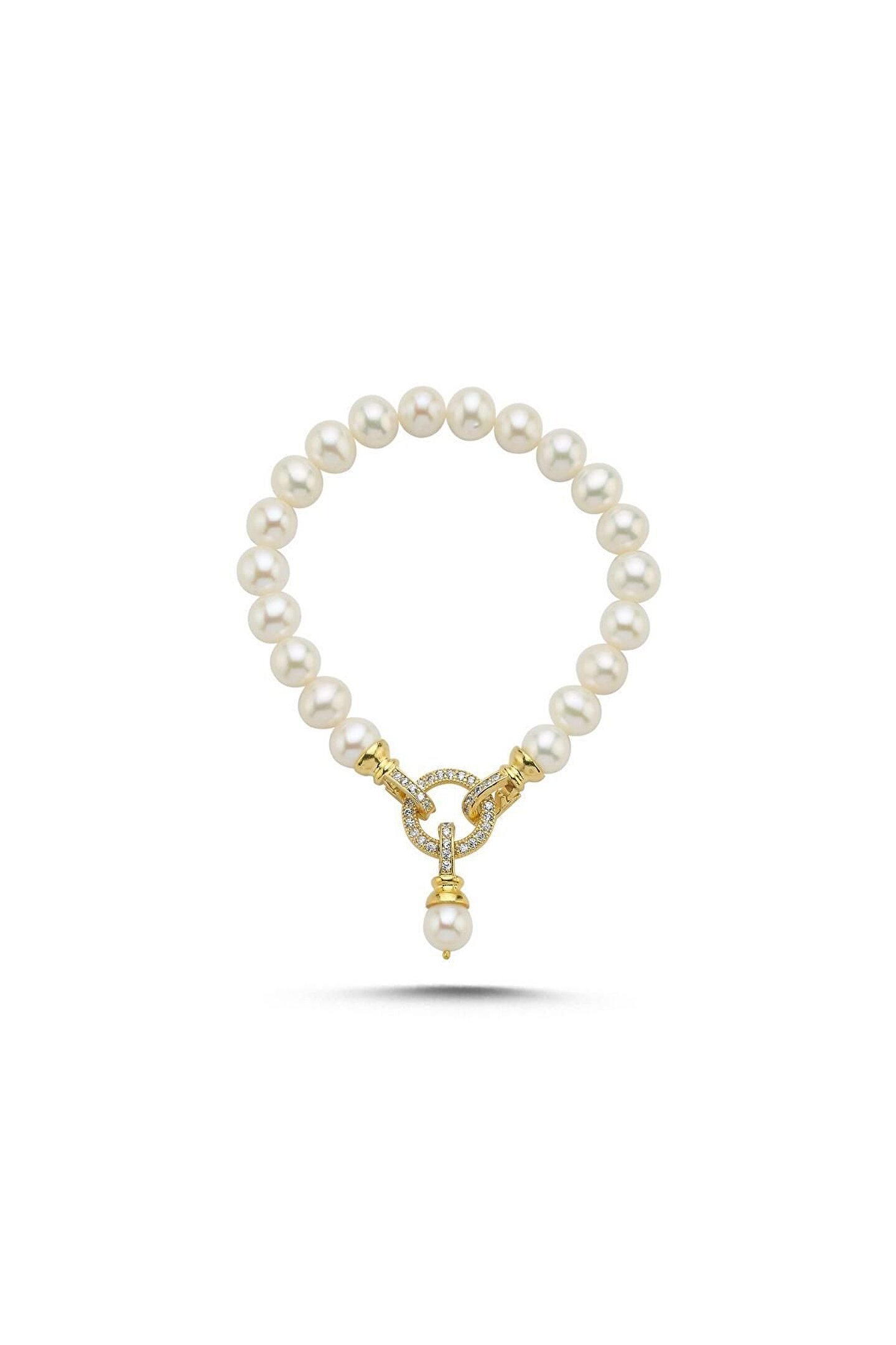 925 Ayar Gümüş Halka Kilitli Doğal İnci Bileklik
