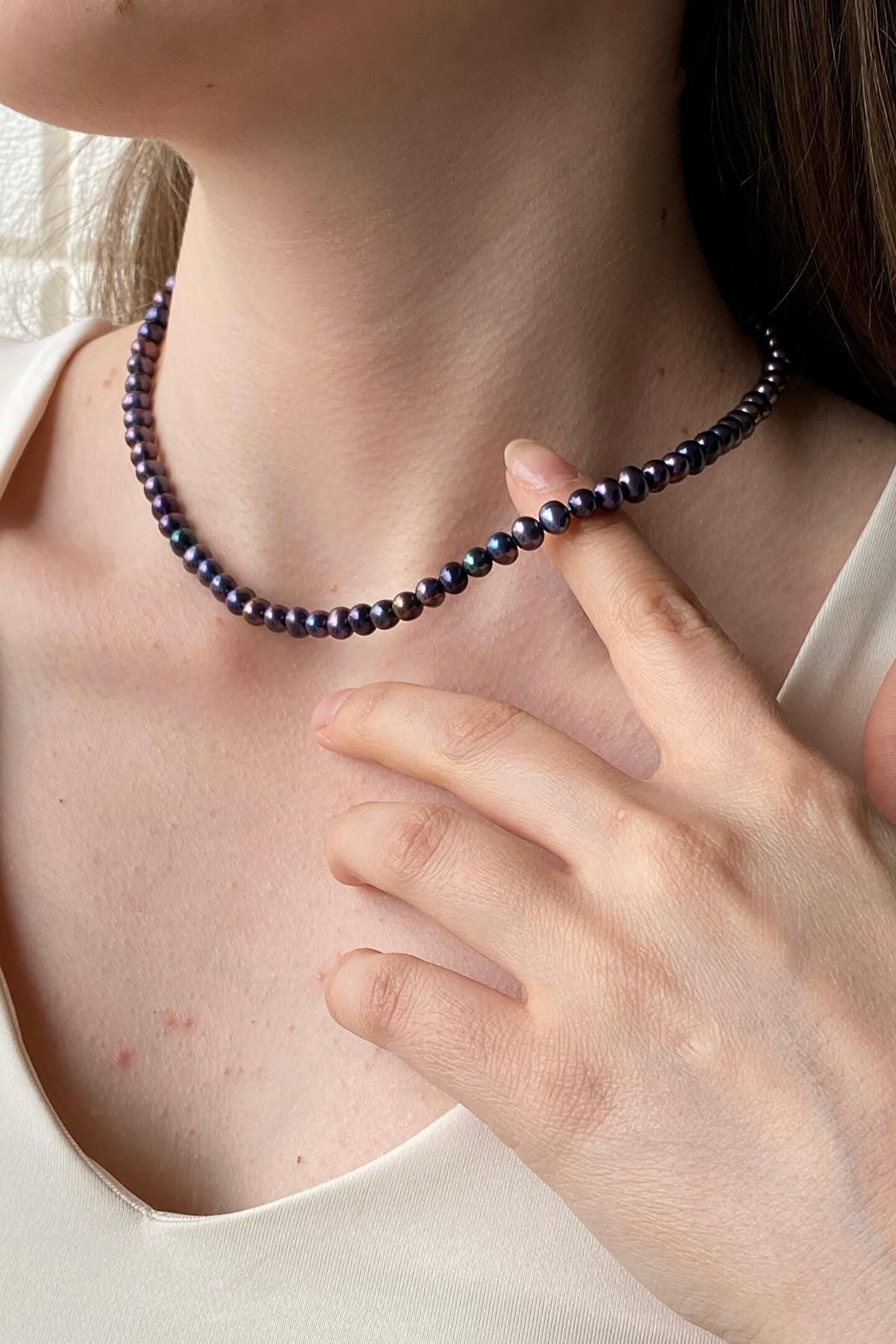925 Ayar Gümüş Kadın 5 mm Sıralı Doğal İnci Kolye