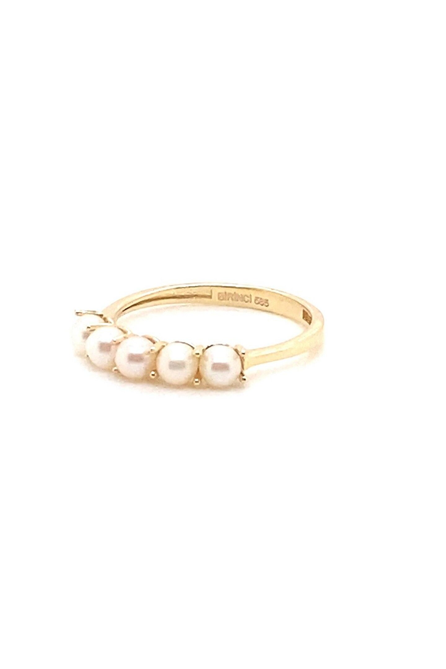 14 Ayar Altın 5 Mm Large Beş Doğal Incili Yüzük