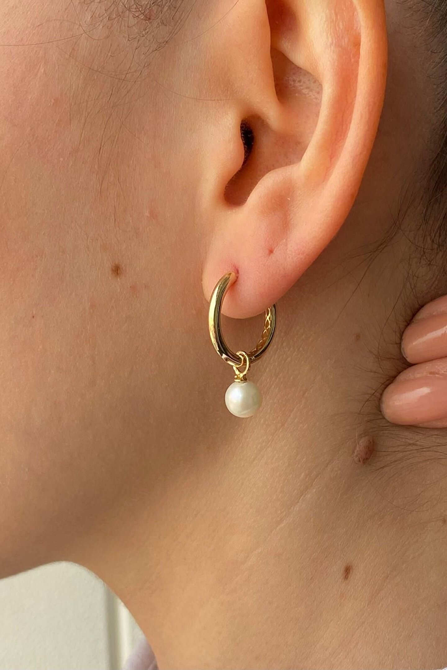 14 Ayar Altın Kadın Büyük Halka 6 Mm Sallantılı Inci Charm Küpe