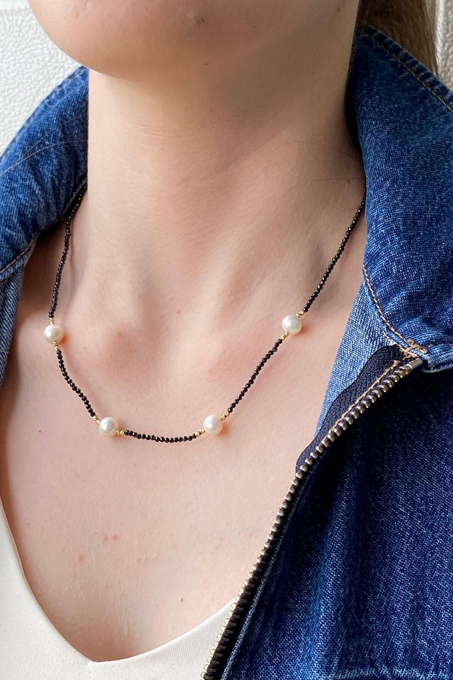 14 Ayar Altın Kadın Doğal Inci Spinel Taş Kolye