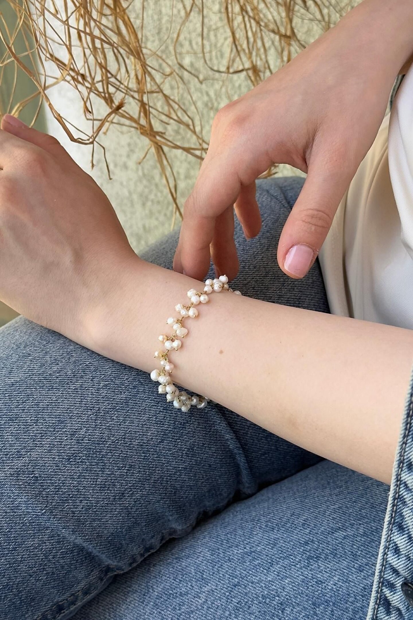 14 Ayar Altın Kadın Sallantılı Doğal Inci Bileklik