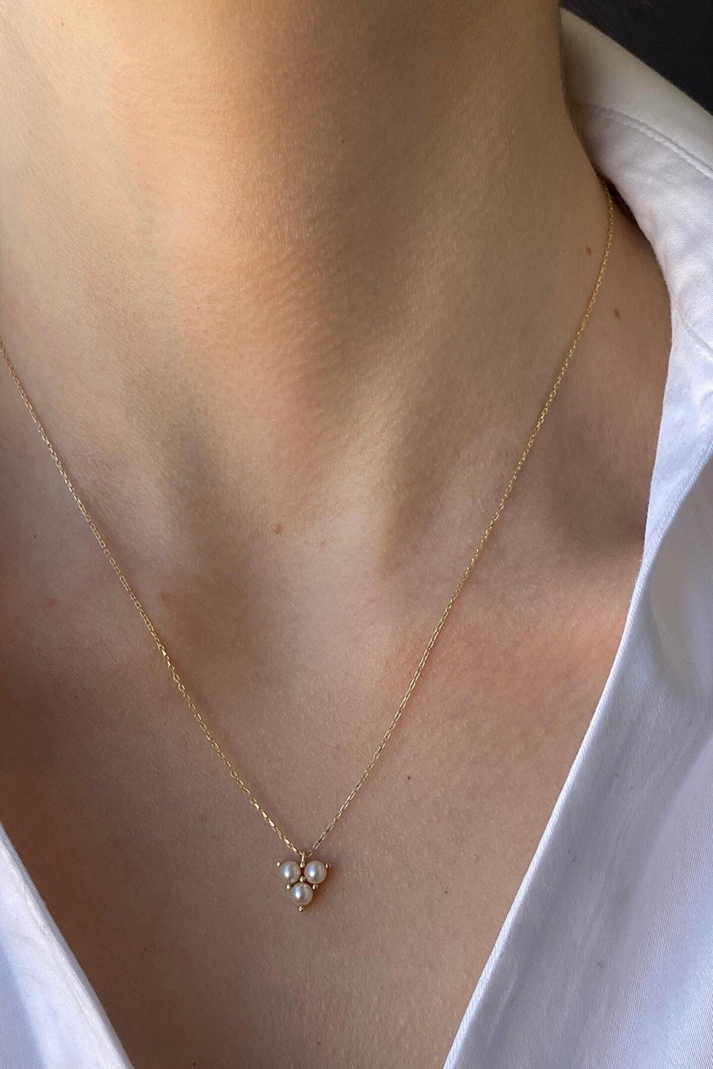 14 Ayar Altın Kadın Tria Doğal Incili Kolye