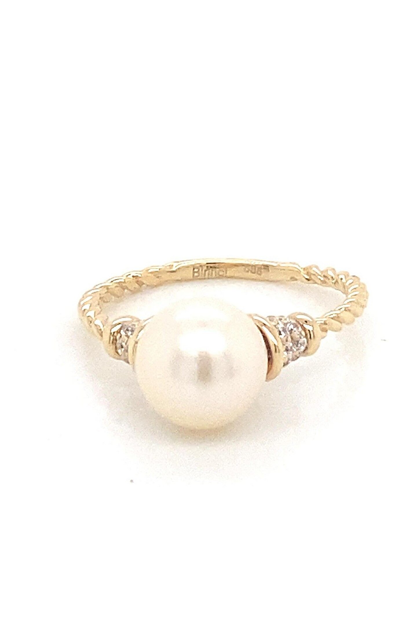 14 Ayar Yeşil Altın Burgulu Taşlı Inci Yüzük
