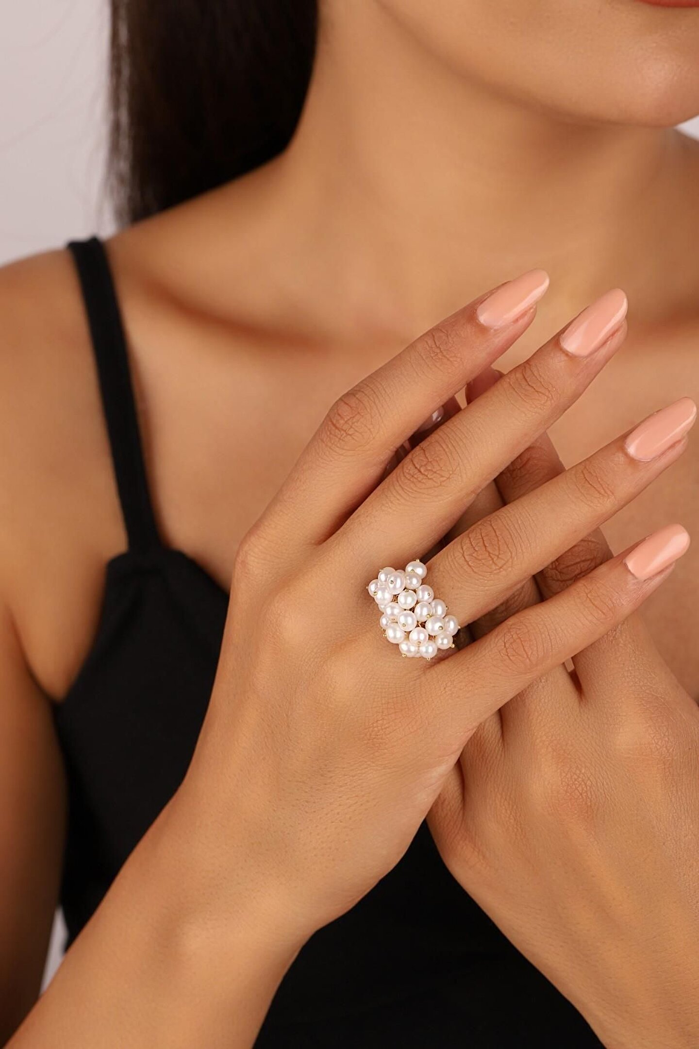 925 Ayar Beyaz Gümüş Kadın Üzümlü Beyaz Gerçek Inci Yüzük