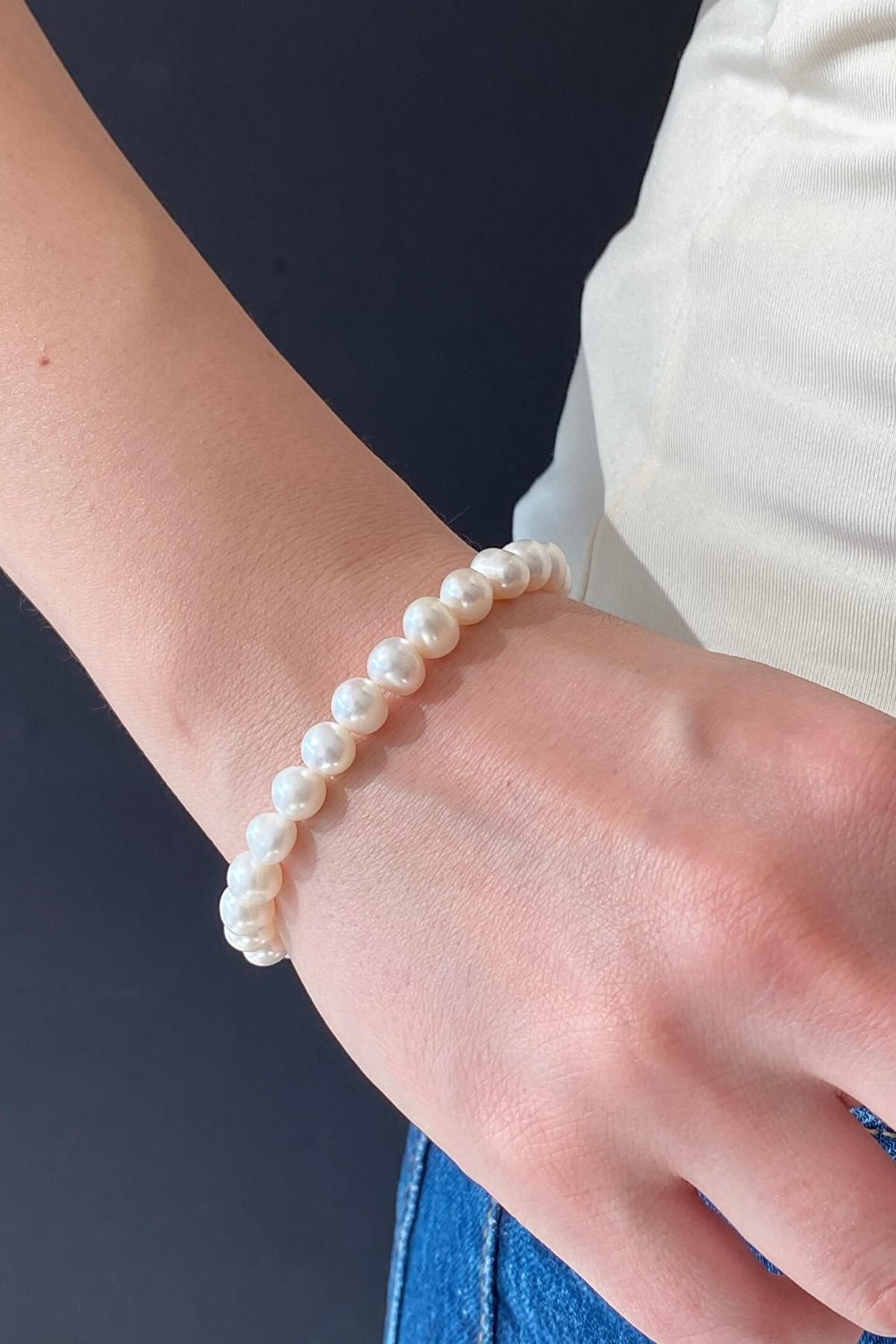 925 Ayar Gümüş 8 Mm Sıralı Doğal Inci Bileklik