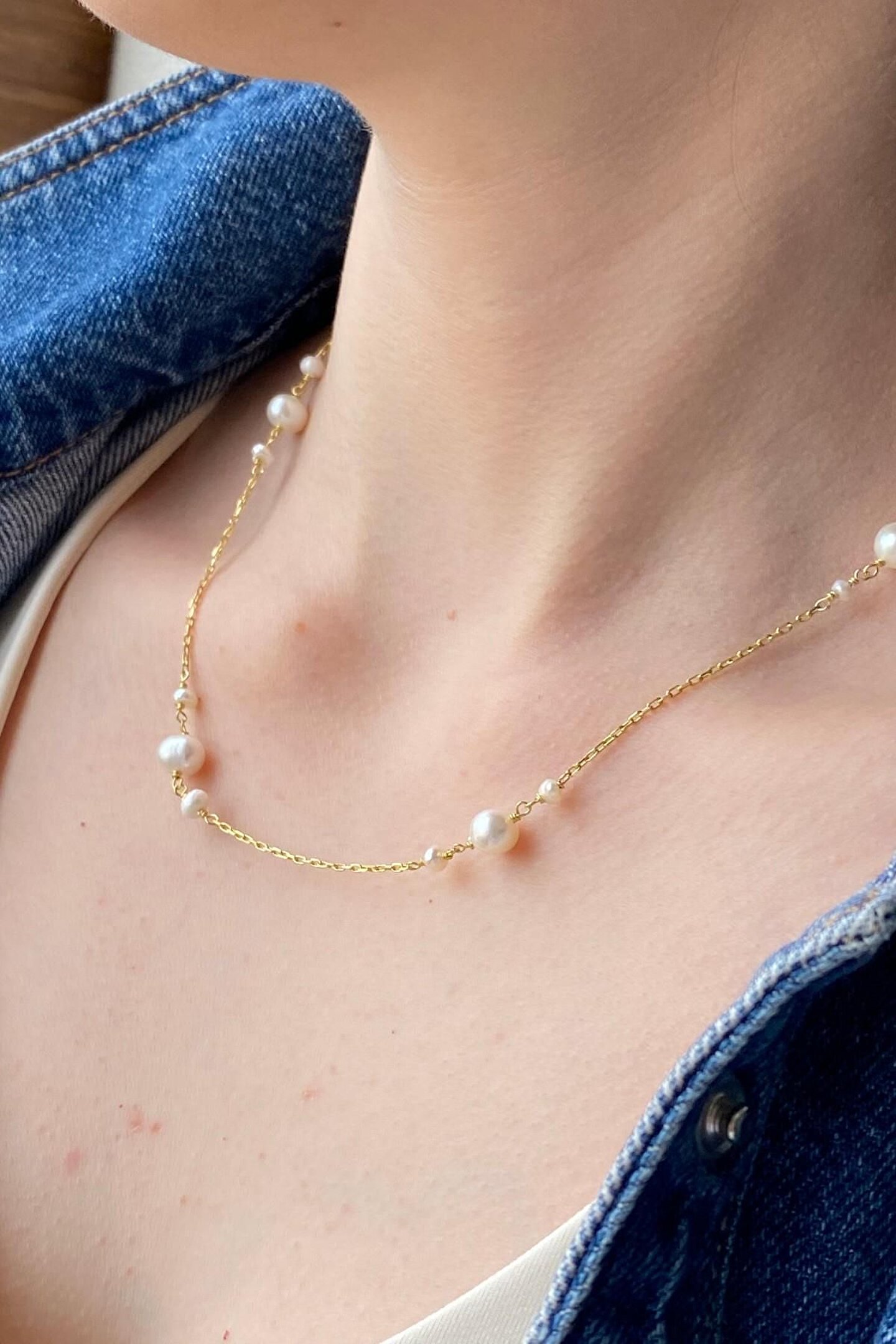 925 Ayar Gümüş Kadın Doğal Inci Zincir Kolye