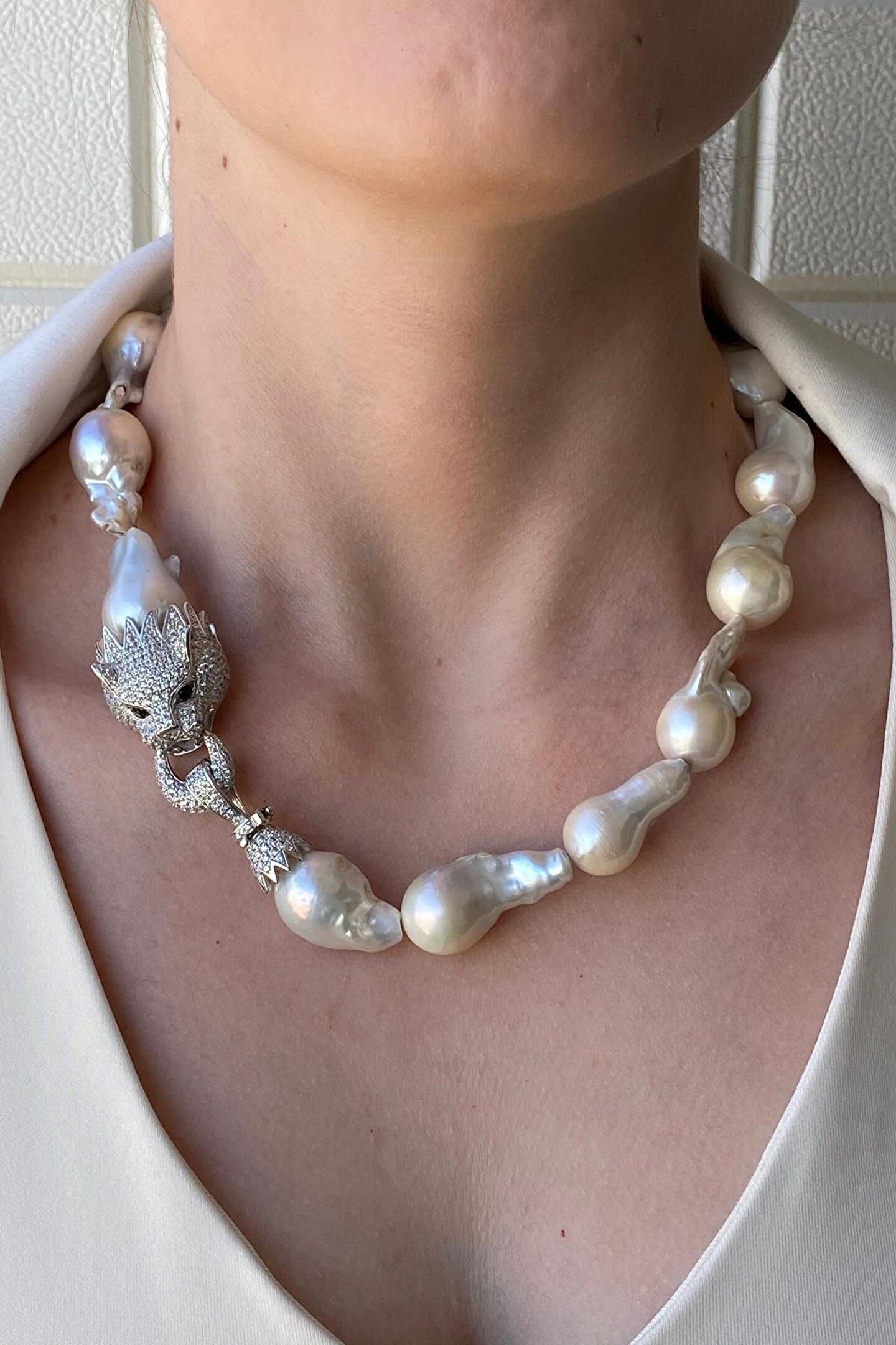 925 Ayar Gümüş Kadın Panterli Barok Doğal Inci Kolye Bileklik Ikili Set