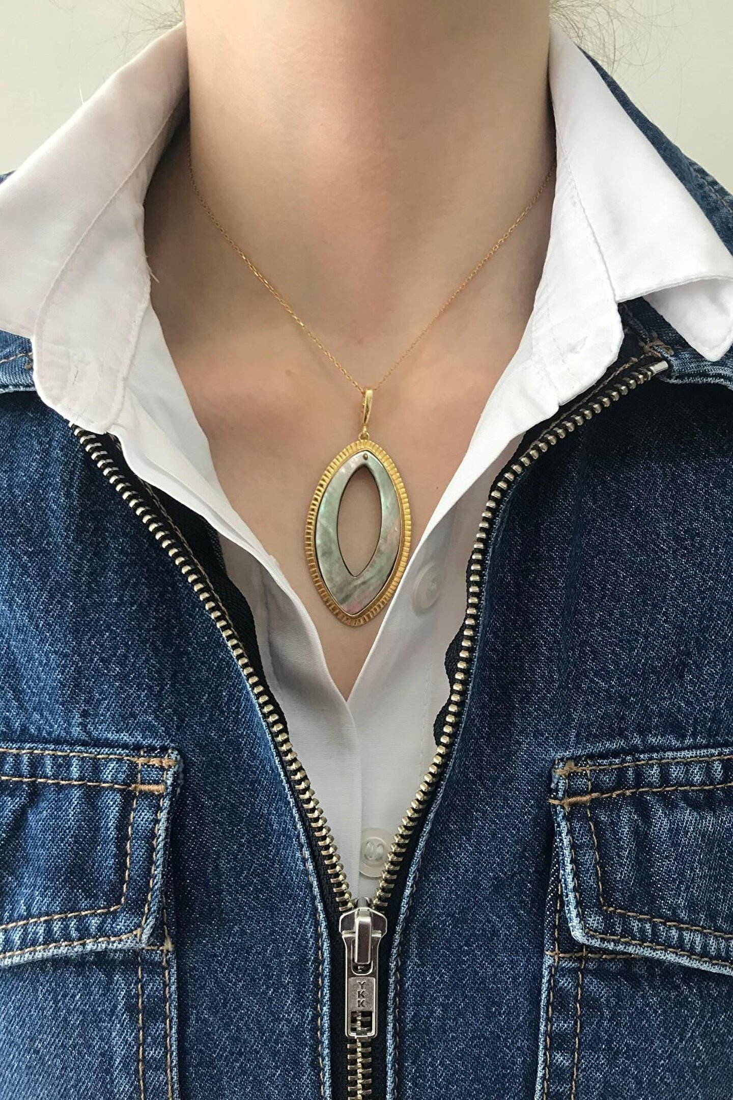 925 Ayar Gümüş Doğal Taş Kolye Siyah İnci