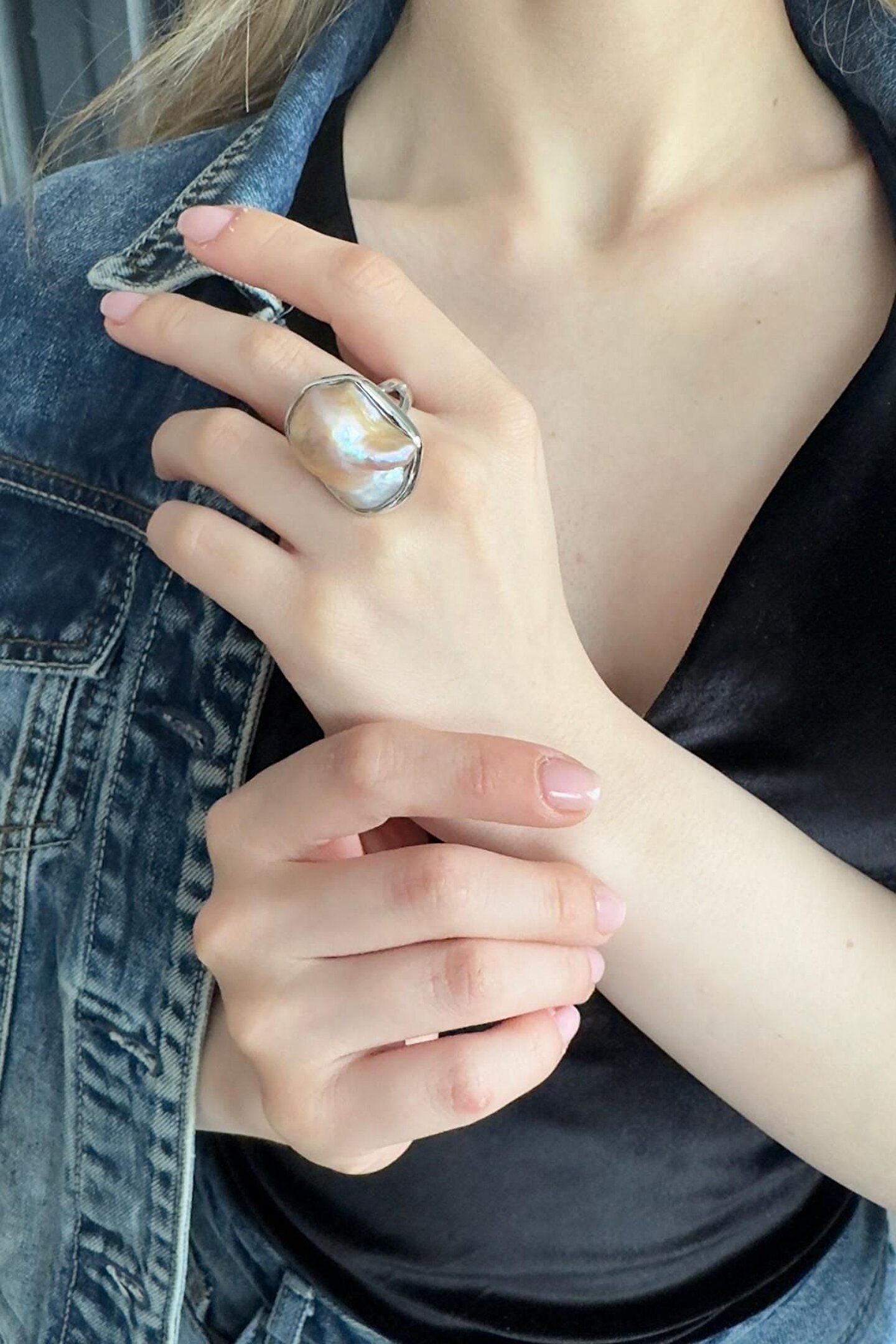925 Gümüş Kadın 24 Mm Barok Doğal Inci Yüzük