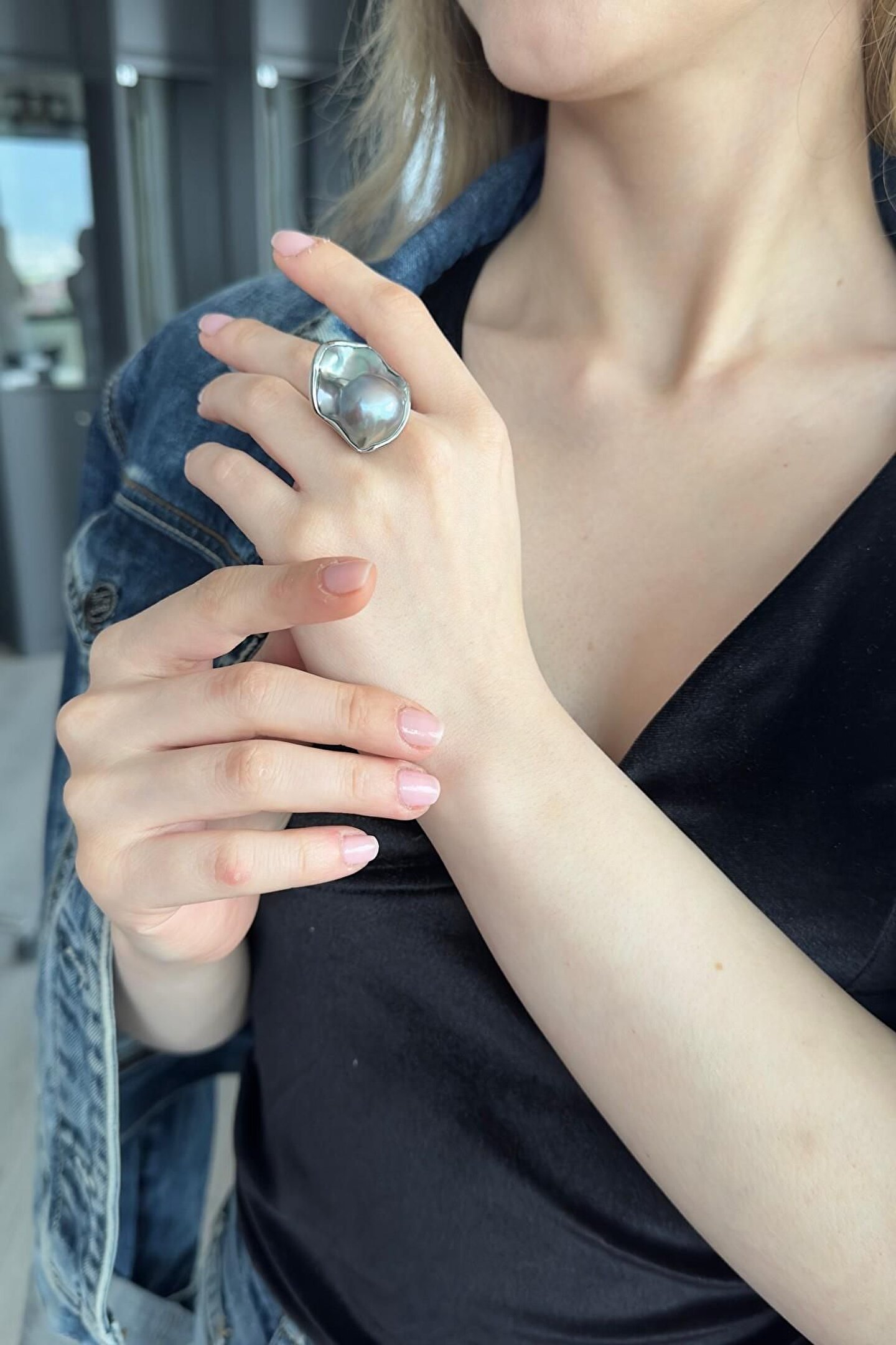 925 Gümüş Kadın 26 Mm Barok Doğal Inci Yüzük