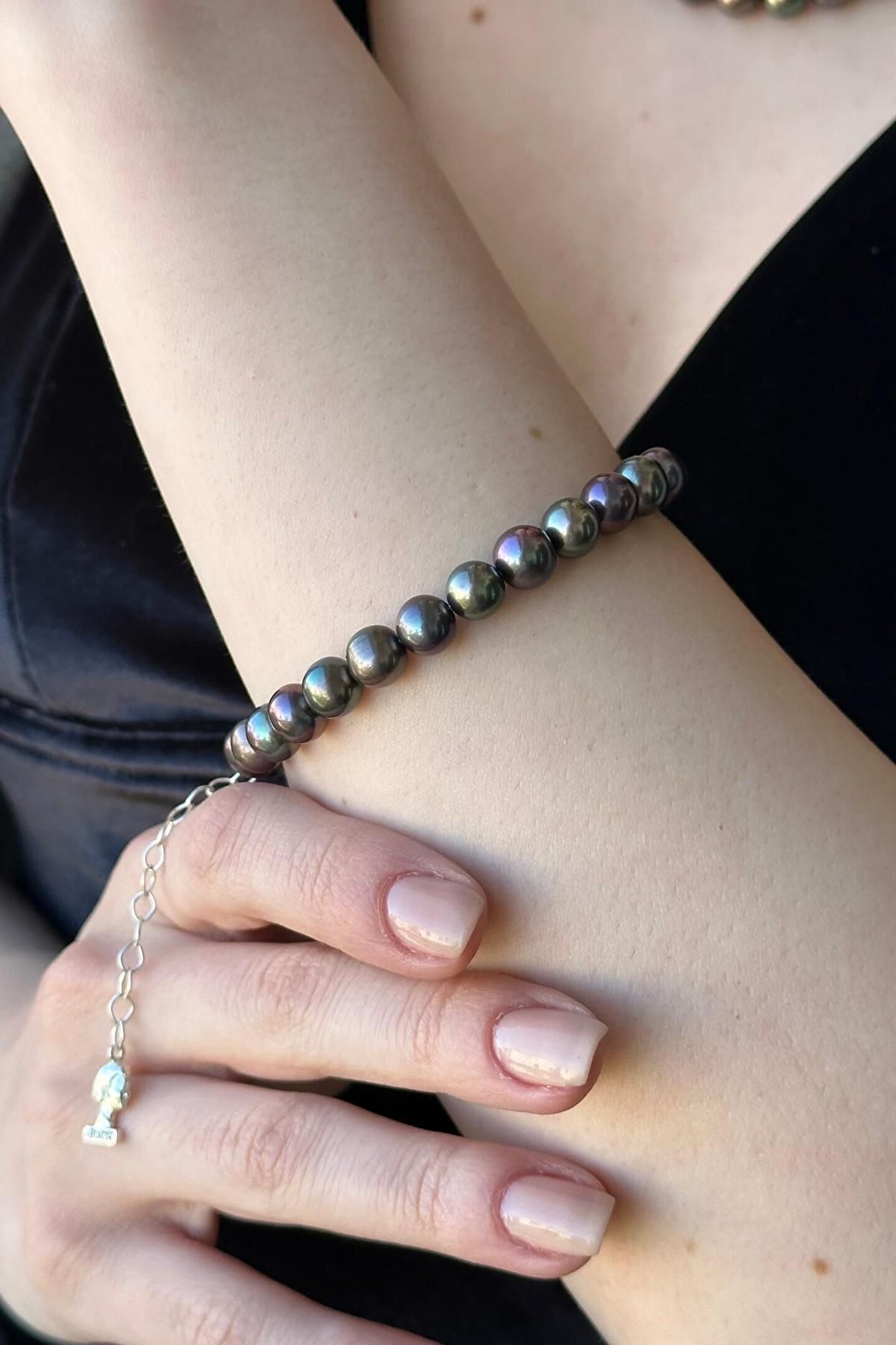 925 Gümüş Kadın Siyah Kültür Incisi Bileklik 8 Mm