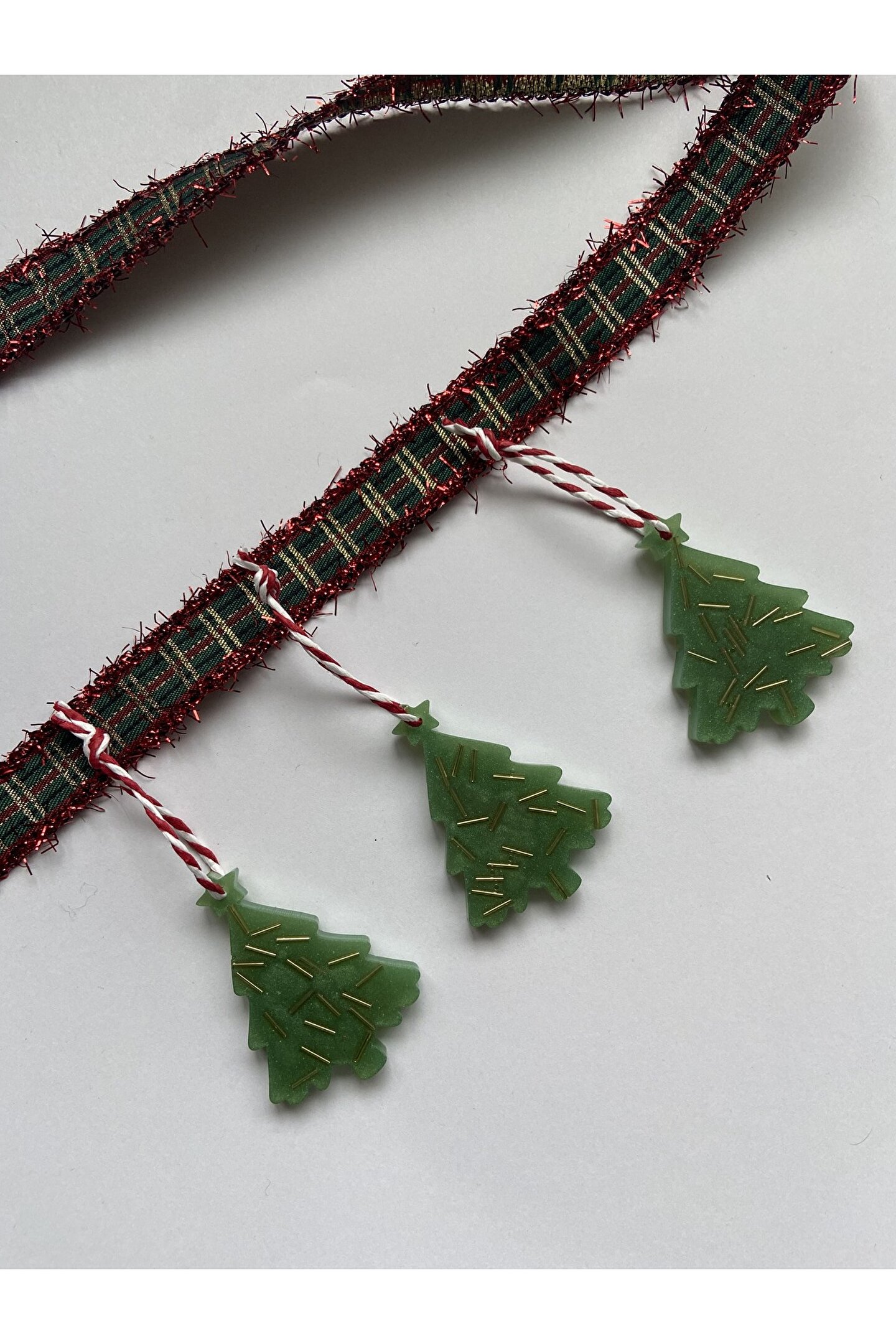 Çam ağacı formunda hazırlanan el emeği epoksi yılbaşı ağacı süsü.