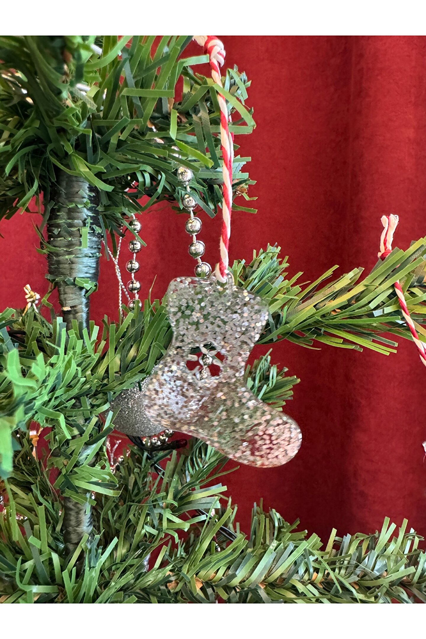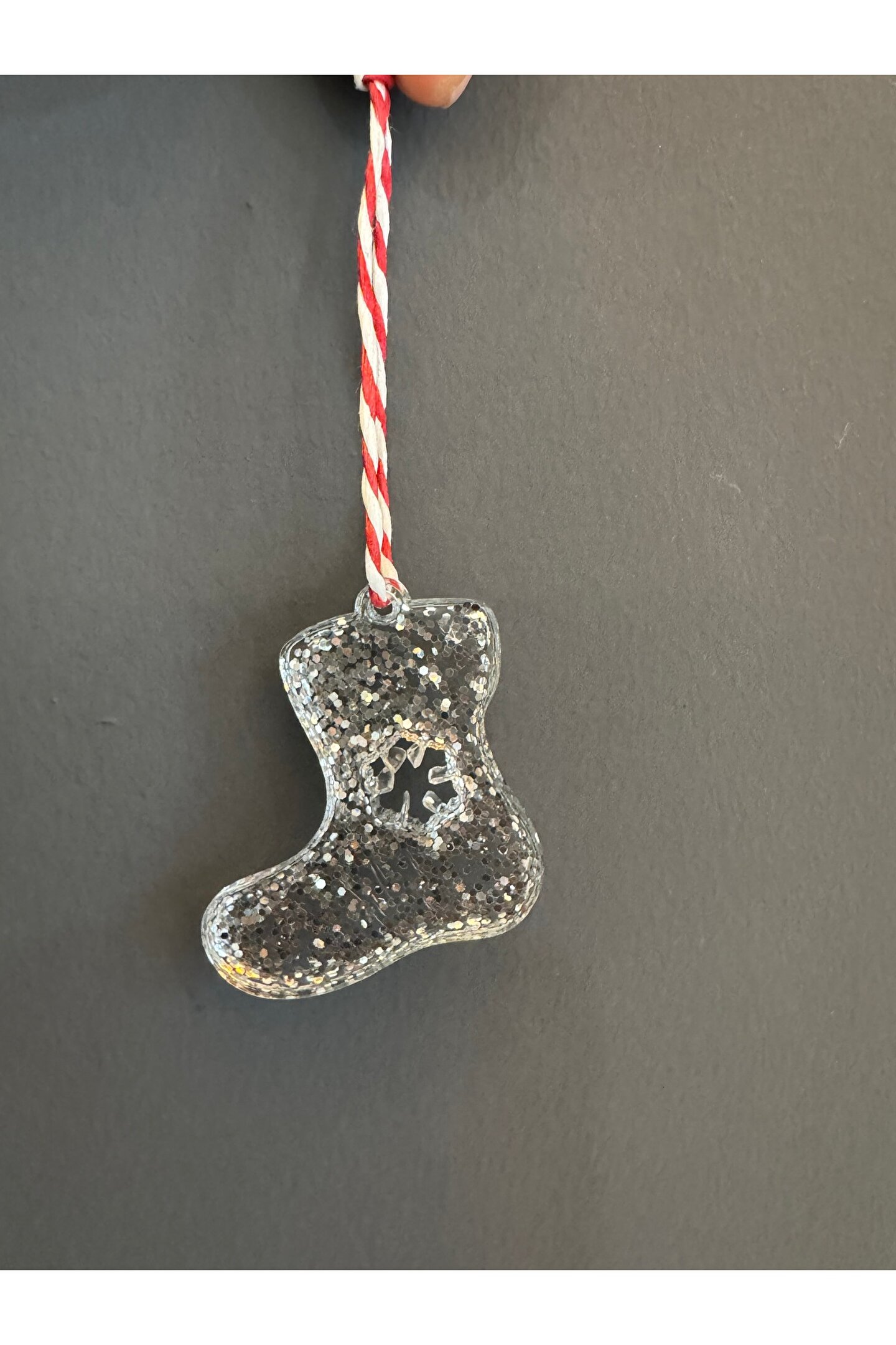 Çorap formunda hazırlanan özel tasarım el emeği epoksi yılbaşı ağacı süsü.; Paket içeriği 3 adettir.