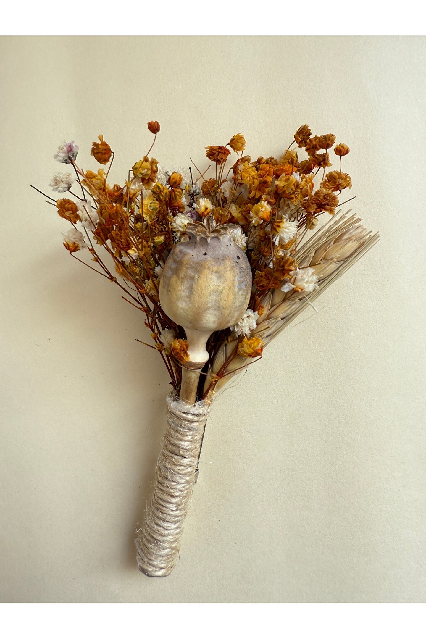 İthal kuru çiçek ve yapay çiçekler ile hazırlanan özel tasarım damat yaka çiçeği